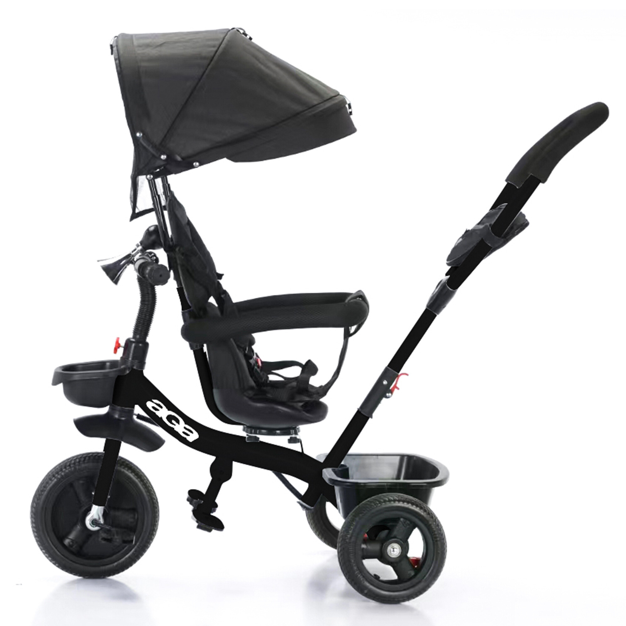 Sedadlo lze otočit o 360° a to ve směru jízdy nebo čelem k rodiči. V zadní a přední části tříkolky je umístěn odkládací košík.