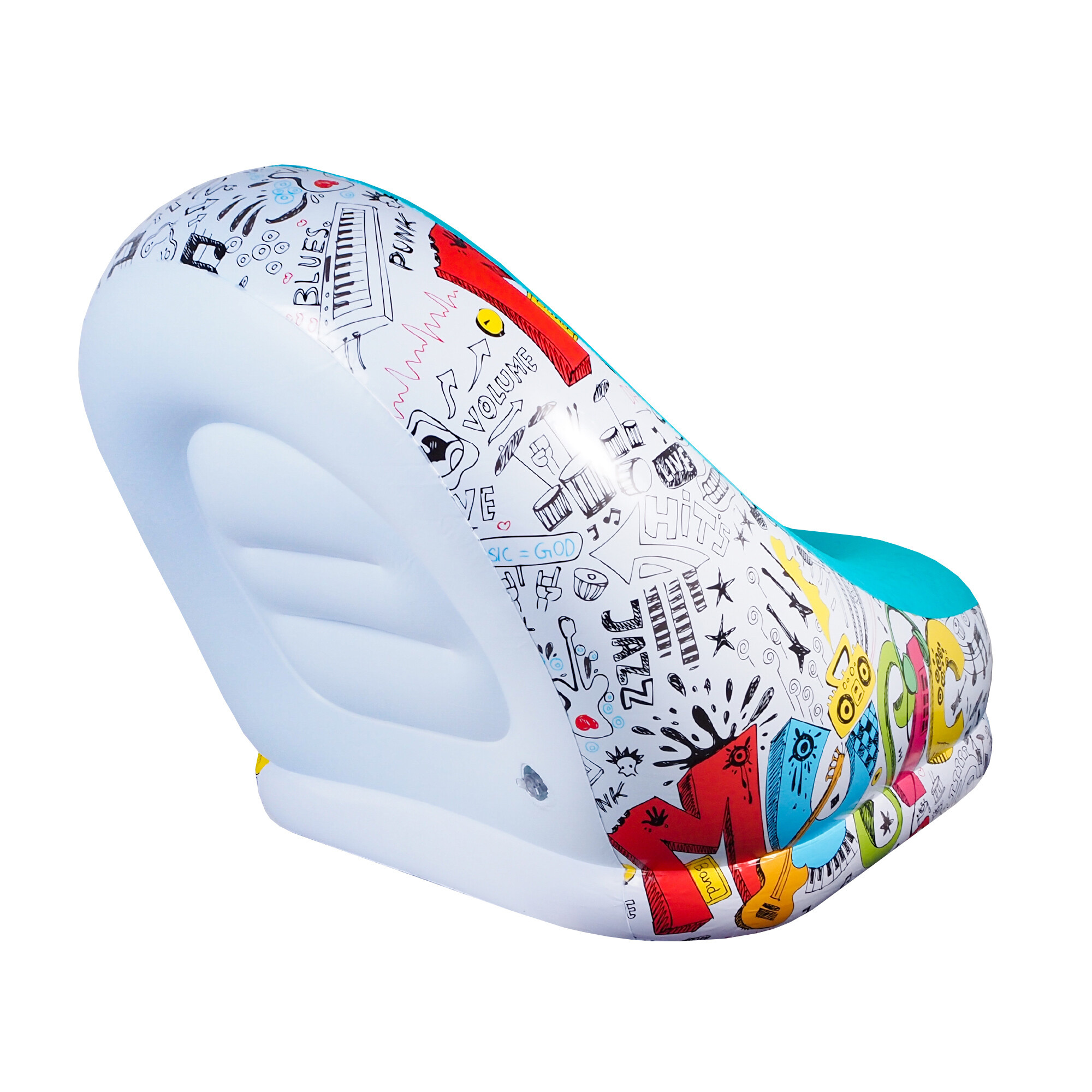 Křeslo se vyznačuje mimořádným pohodlím. Je vyrobeno z pevného a vůči propíchnutí odolného PVC a jeho sedák je potažen měkkou látkou imitující velur.