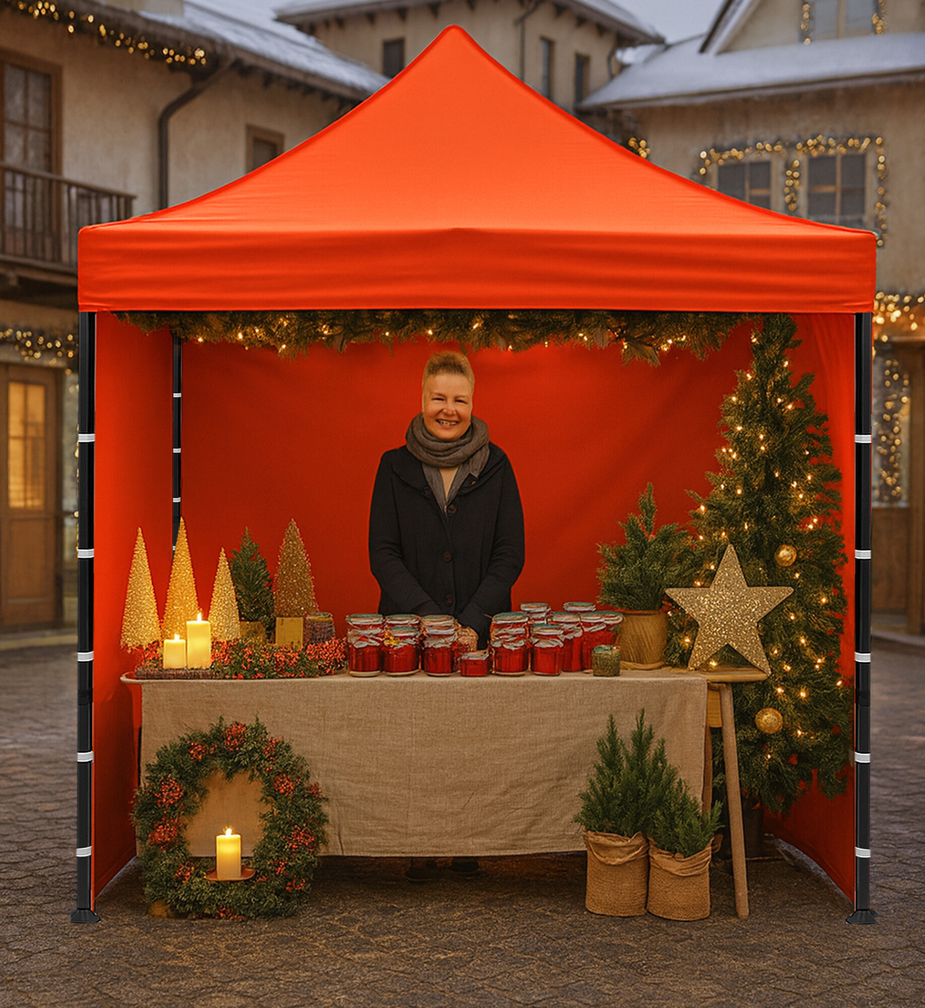 Prodejní stánek 2×3 m s pevnou nůžkovou ocelovou konstrukcí patří k nejvyhledávanějším modelům. Poskytuje dostatek prostoru pro prodej i prezentaci a zároveň se snadno přenáší a rychle skládá. Využijete ho při venkovních i interiérových akcích od farmářských trhů přes veletrhy a výstavy až po promo akce a firemní eventy.