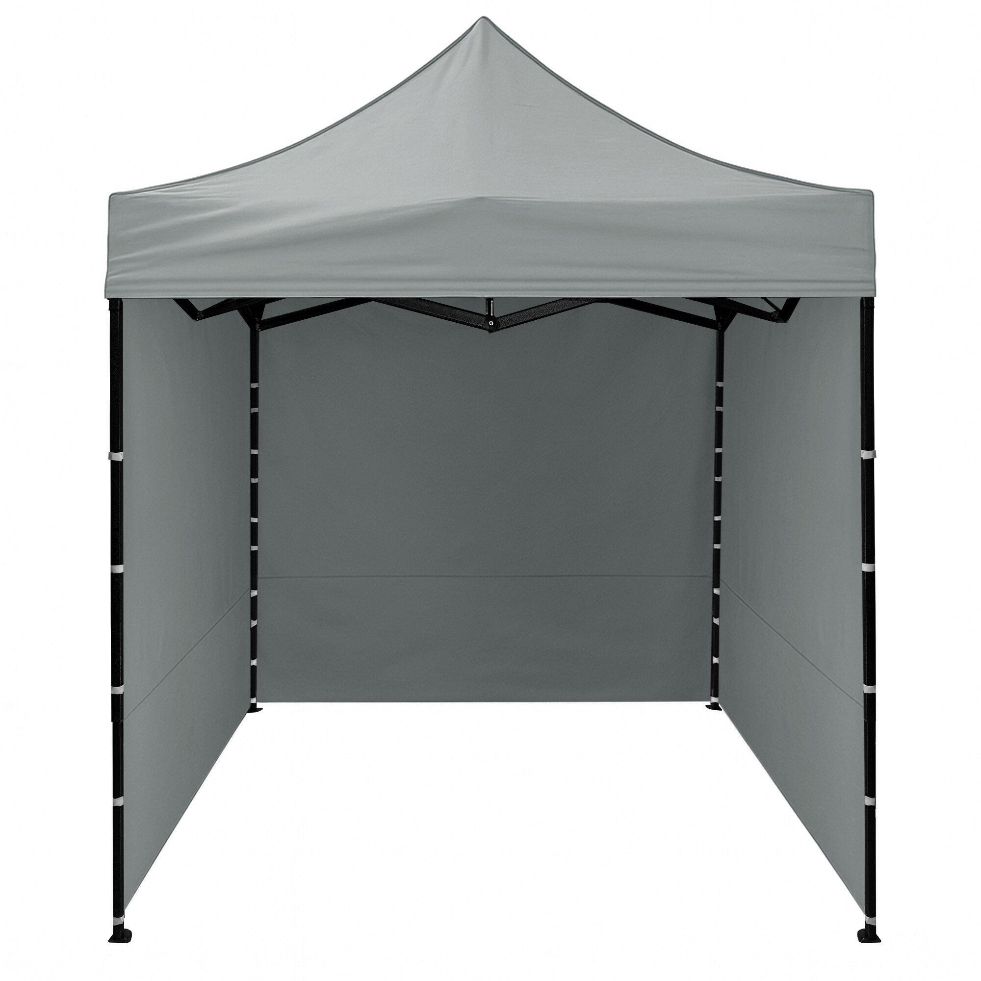 Střecha z 420D PU Oxfordu a bočnice z PVC Oxford 210D poskytují ochranu před větrem i deštěm a zároveň vytvářejí reprezentativní zázemí pro prodejce i zákazníky. Díky praktickému suchému zipu lze bočnice rychle sejmout nebo znovu upevnit.