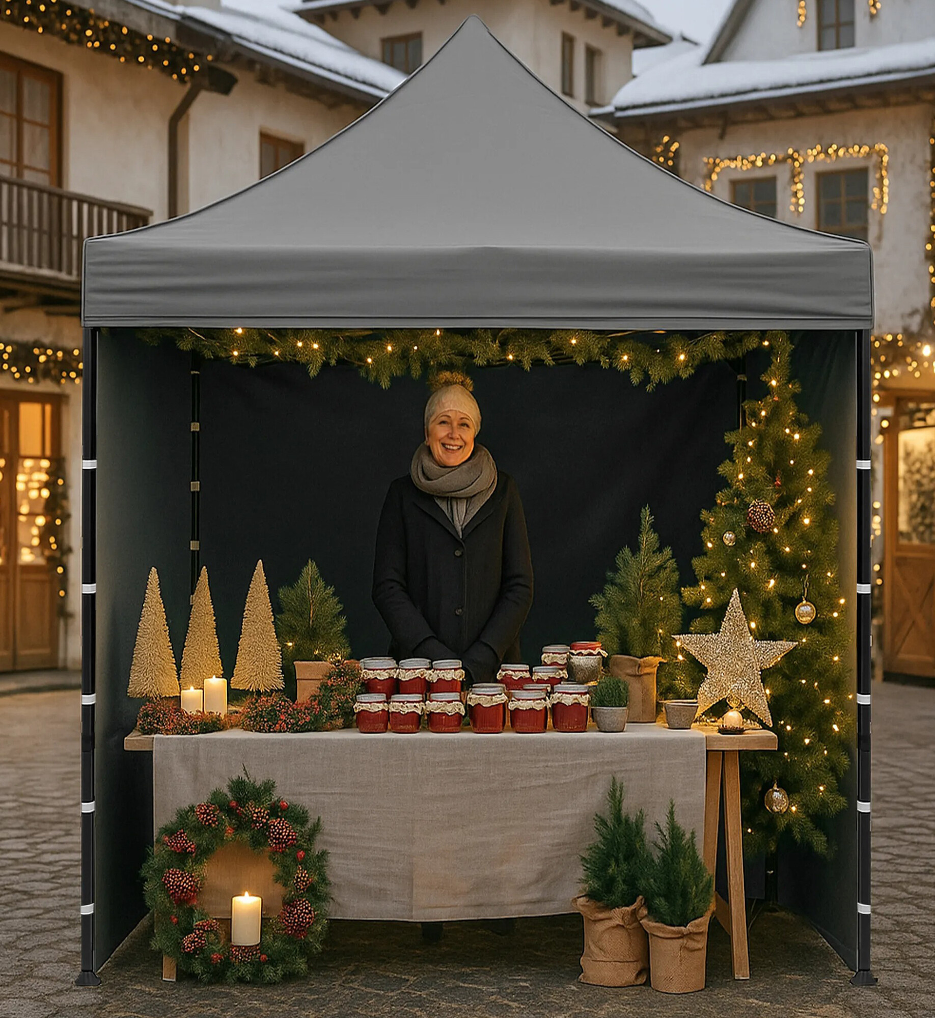 Prodejní stánek 2×3 m s pevnou nůžkovou ocelovou konstrukcí patří k nejvyhledávanějším modelům. Poskytuje dostatek prostoru pro prodej i prezentaci a zároveň se snadno přenáší a rychle skládá. Využijete ho při venkovních i interiérových akcích od farmářských trhů přes veletrhy a výstavy až po promo akce a firemní eventy.