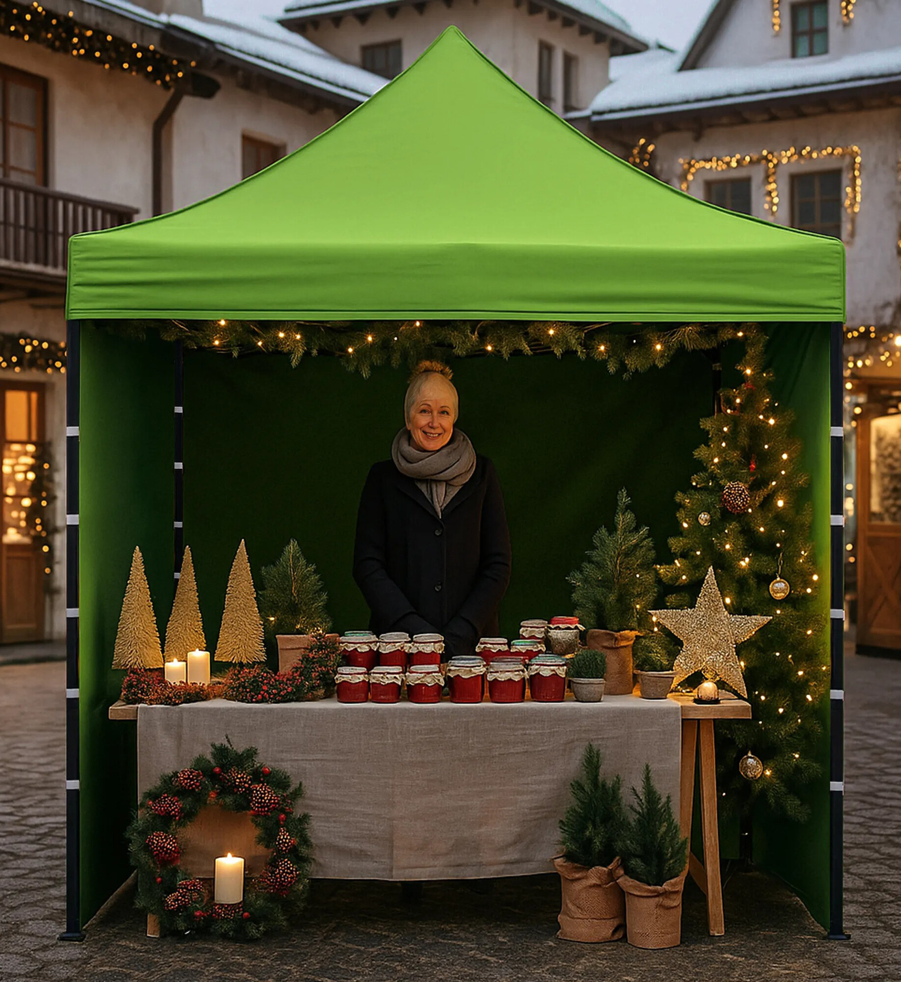 Tento model je vhodný jako farmářský stánek, reklamní stánek, promo stan, výstavní stánek nebo párty přístřešek.