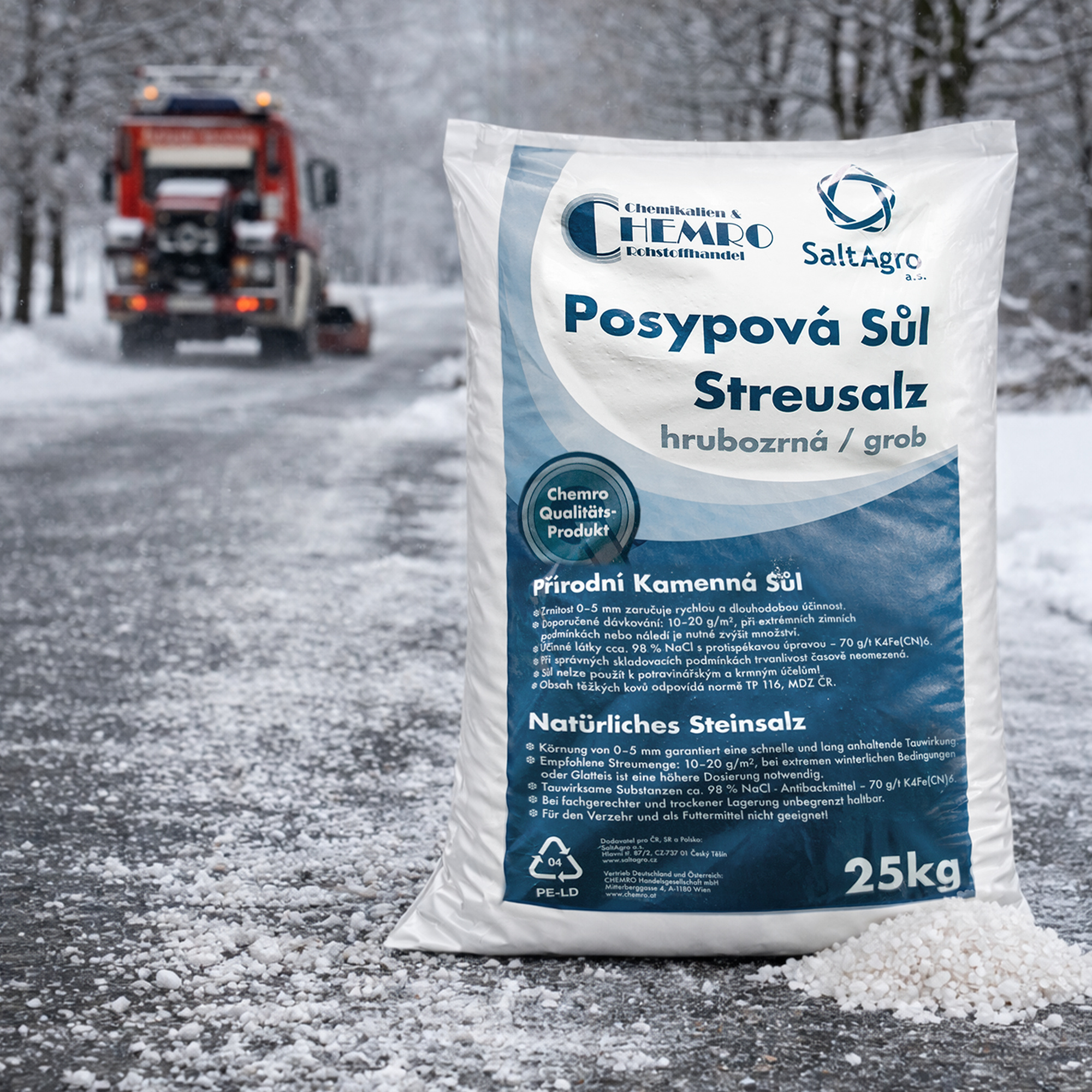 Posypová sůl 25 kg je vysoce účinný prostředek pro zimní údržbu chodníků, příjezdových cest, parkovišť i komunikací. Díky optimální zrnitosti 0–5 mm zaručuje rychlý nástup účinku a dlouhodobé působení, a to i při náročných zimních podmínkách.