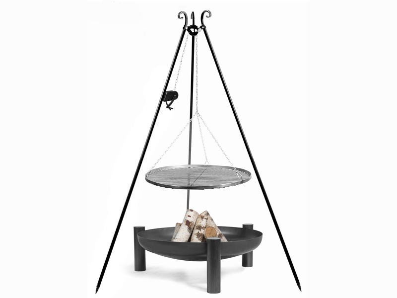Kulaté ohniště o průměru 80 cm a hloubce mísy 21 cm je vyrobeno z masivní oceli o tloušťce cca 2,5 mm. Pro zaručení maximální stability je vybaveno třemi masivními podstavci ze stejného materiálu.