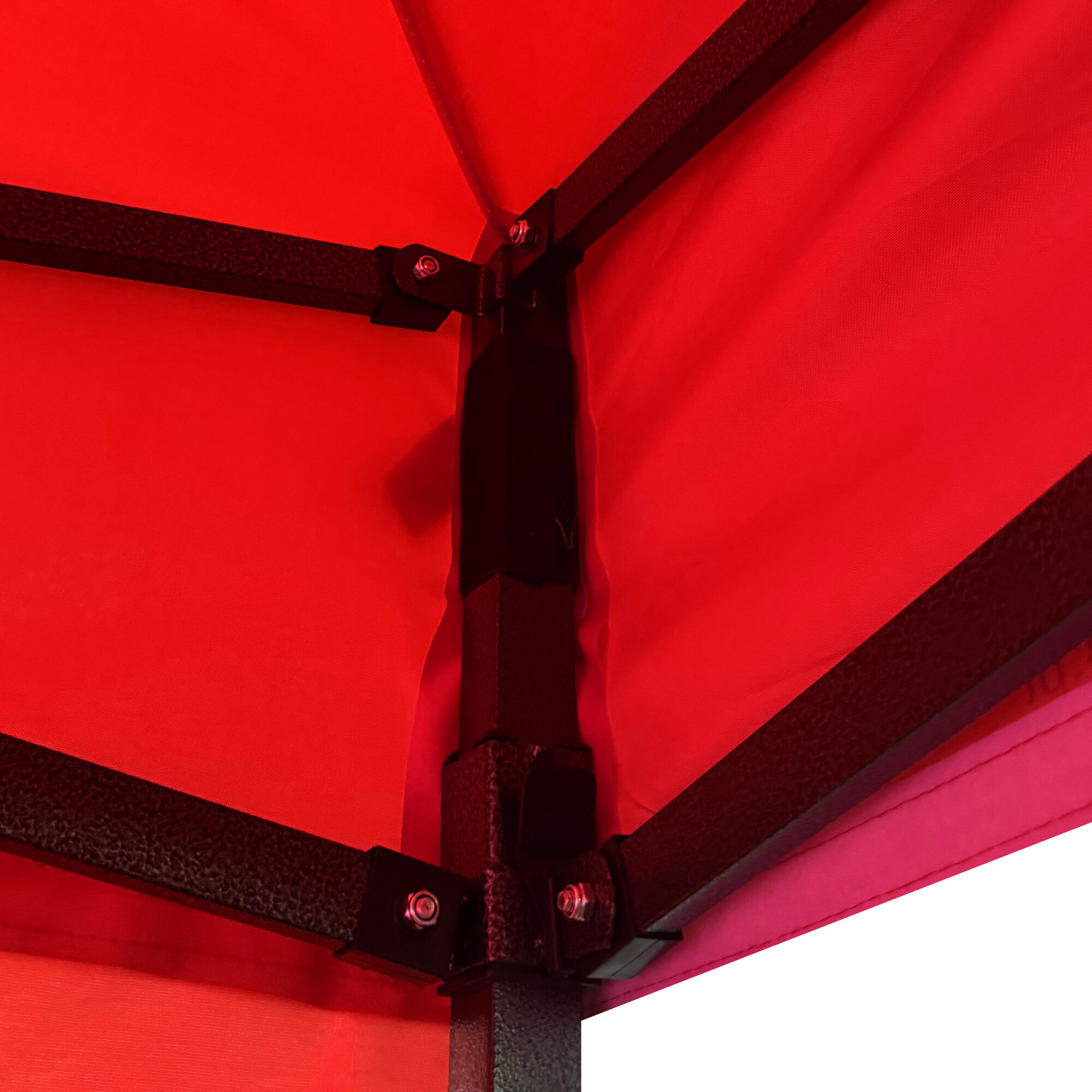 Rám je vyroben z práškově lakované oceli se šroubovanými spoji, které zaručují stabilitu a dlouhou životnost. Patky na nohách umožňují bezpečné ukotvení stánku na pevném povrchu a tím zvyšují jeho odolnost při častém používání.