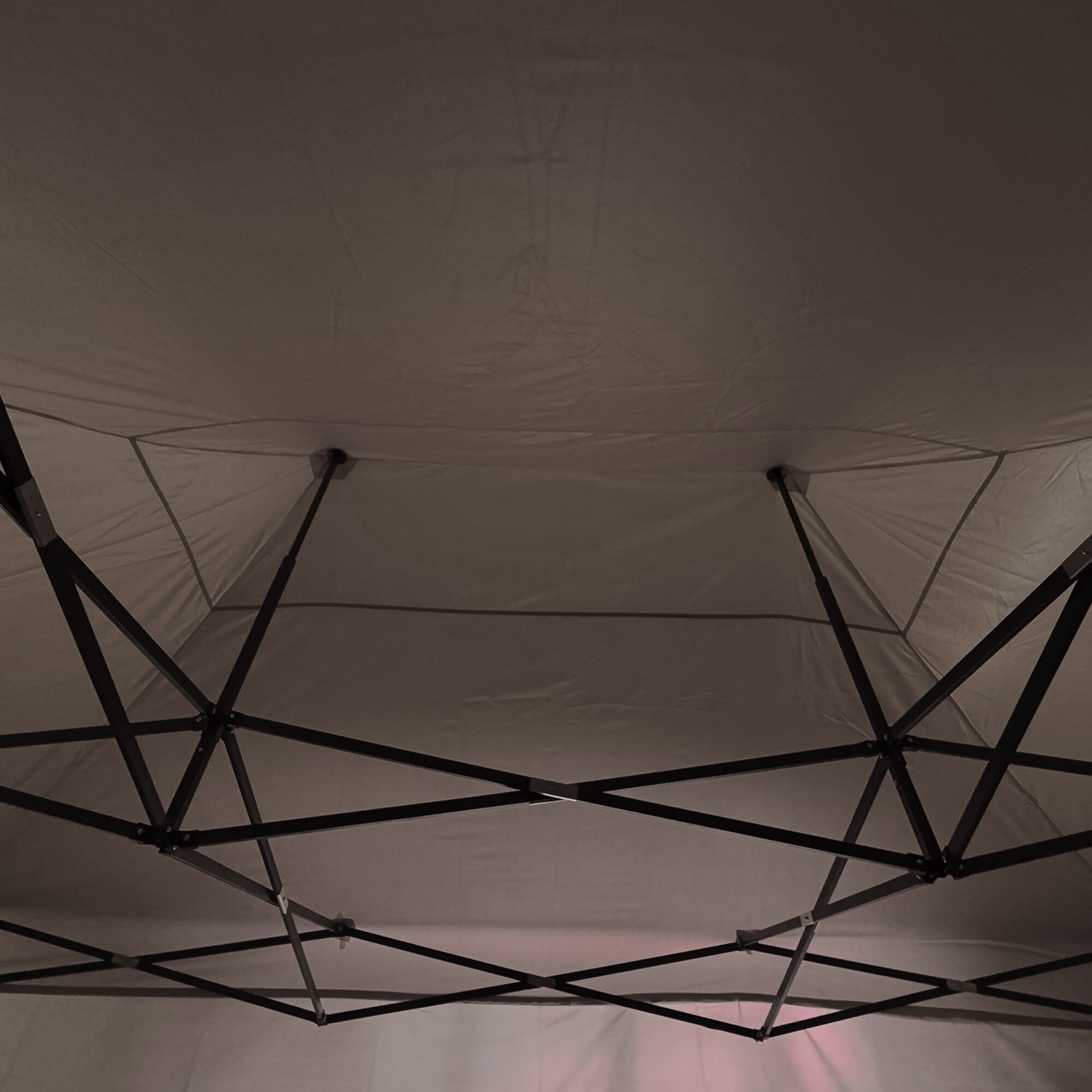 Rám je vyroben z práškově lakované oceli se šroubovanými spoji, které zaručují stabilitu a dlouhou životnost. Patky na nohách umožňují bezpečné ukotvení stánku na pevném povrchu a tím zvyšují jeho odolnost při častém používání.