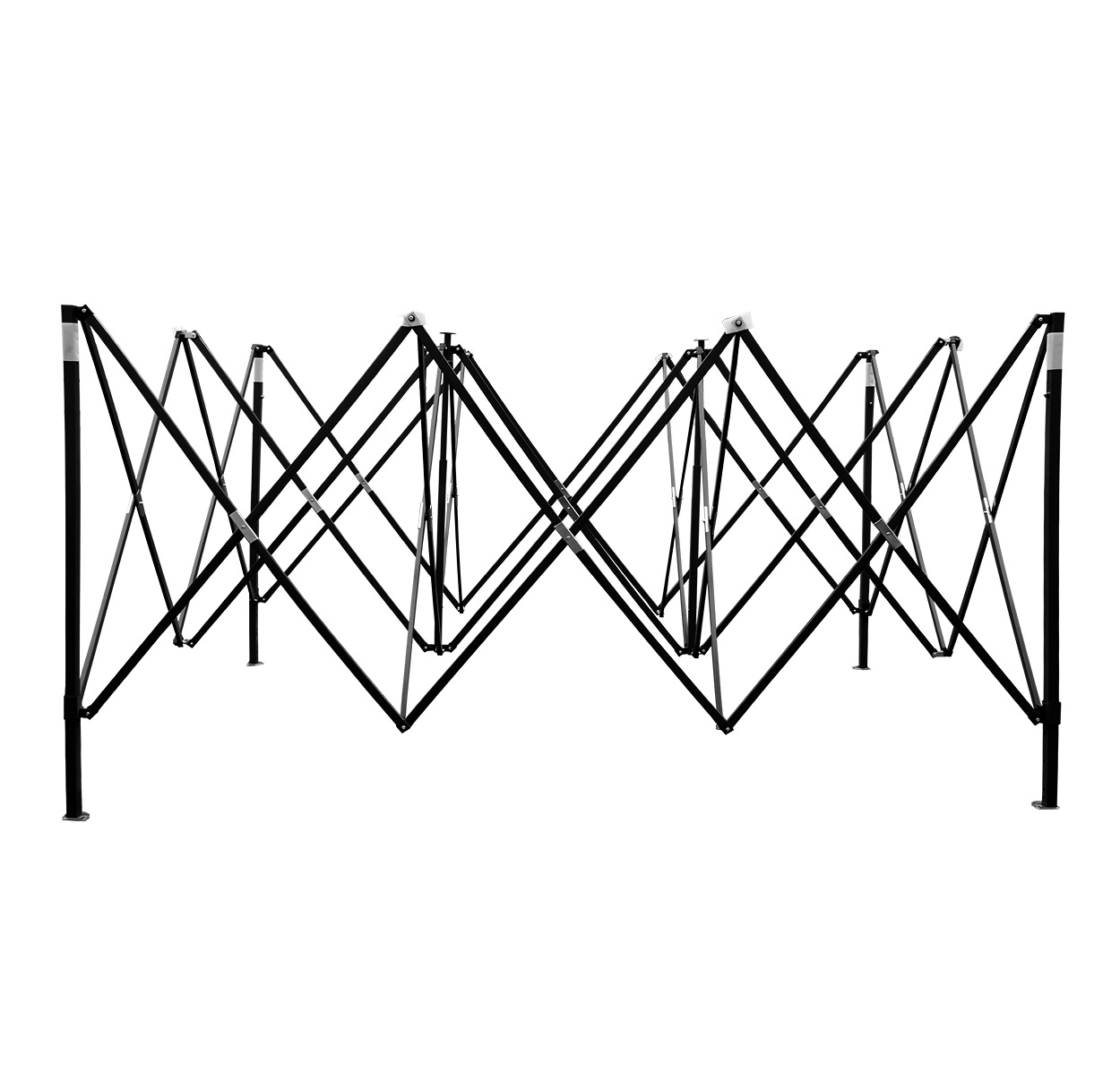 Rám je vyroben z práškově lakované oceli se šroubovanými spoji, které zaručují stabilitu a dlouhou životnost. Patky na nohách umožňují bezpečné ukotvení stánku na pevném povrchu a tím zvyšují jeho odolnost při častém používání.