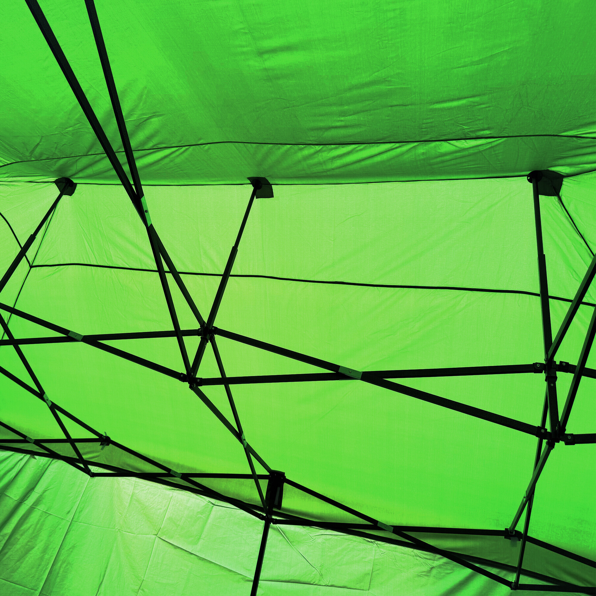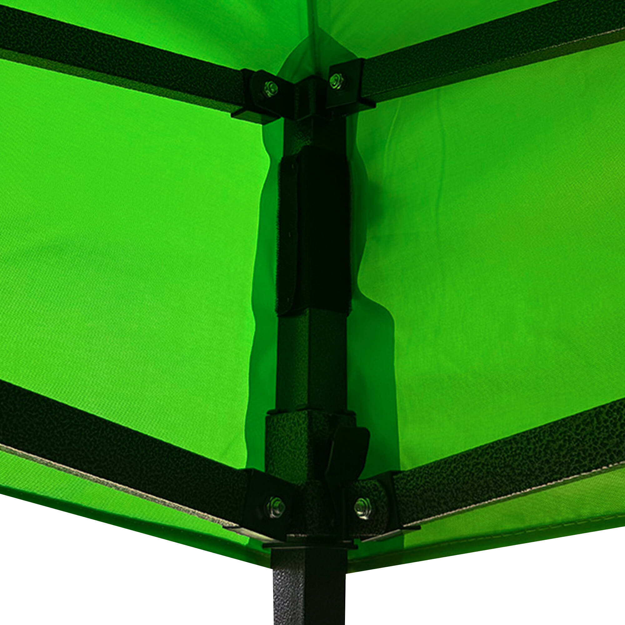 Střecha stánku je vyrobena z odolné textilie 420D PU Oxford, která chrání před slunečním zářením i deštěm a lze ji snadno vyčistit ručním praním. Robustní ocelová konstrukce s nůžkovým mechanismem je povrchově ošetřena práškovým lakem, díky čemuž je chráněná proti korozi a dlouhodobému opotřebení. Šroubované spoje zajišťují maximální pevnost a v případě potřeby i jednoduchou údržbu. Výšku konstrukce lze nastavit ve třech úrovních (213–290 cm).