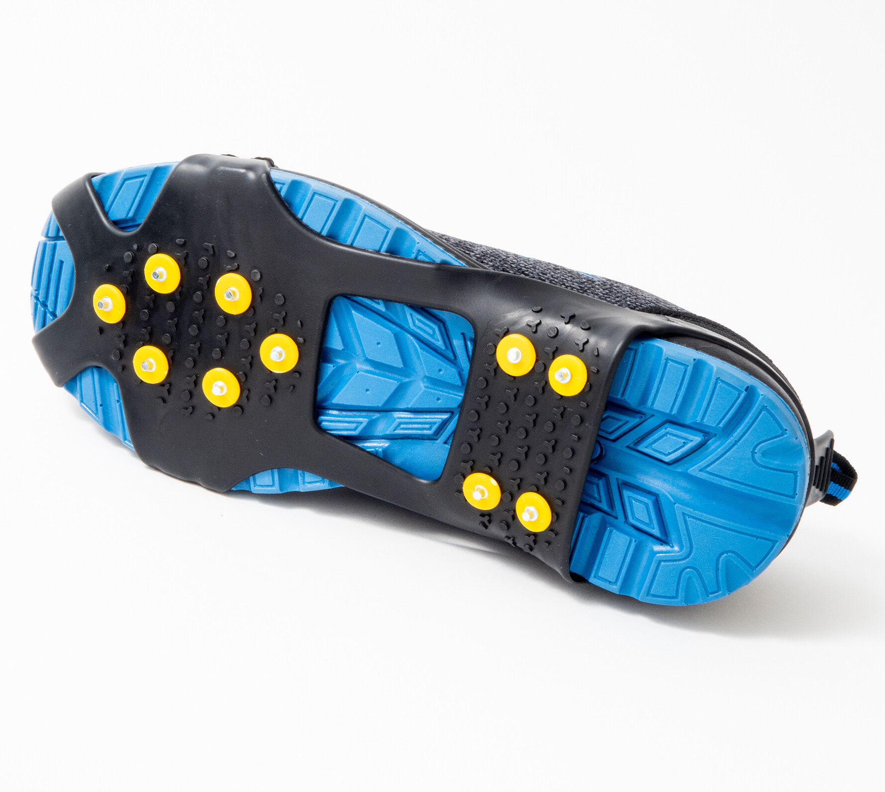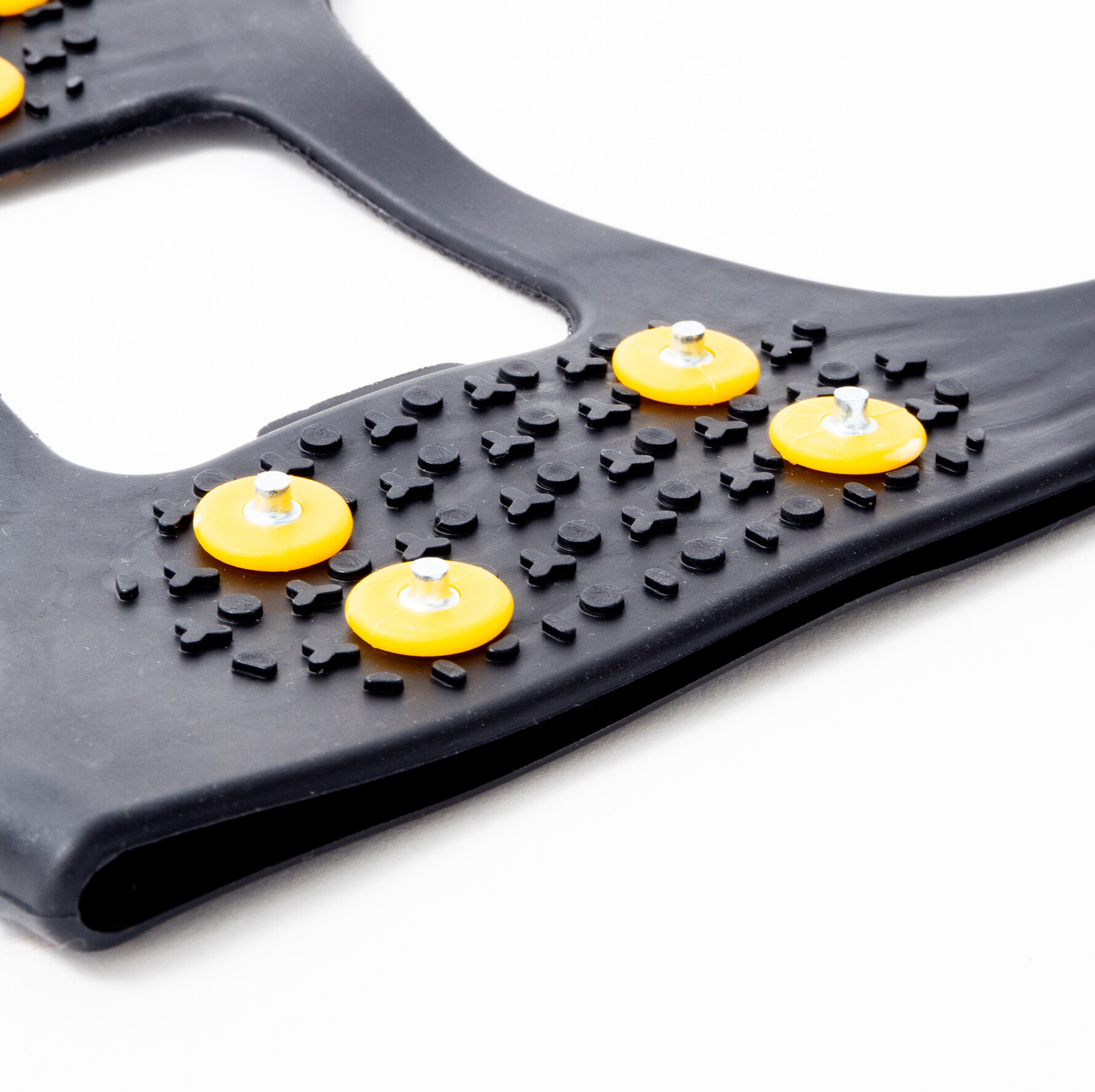 Pryžové výstupky mezi hroty usnadňují i chůzi po tvrdé dlažbě. Použitelné na jakoukoli obuv, včetně botů s podpatky.