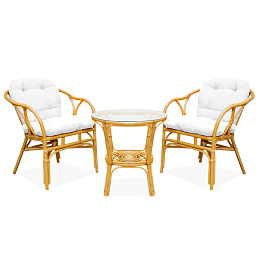 - Sestava obsahuje: Ratanové křesla, stolek se sklem a kompletní sadu polstrů