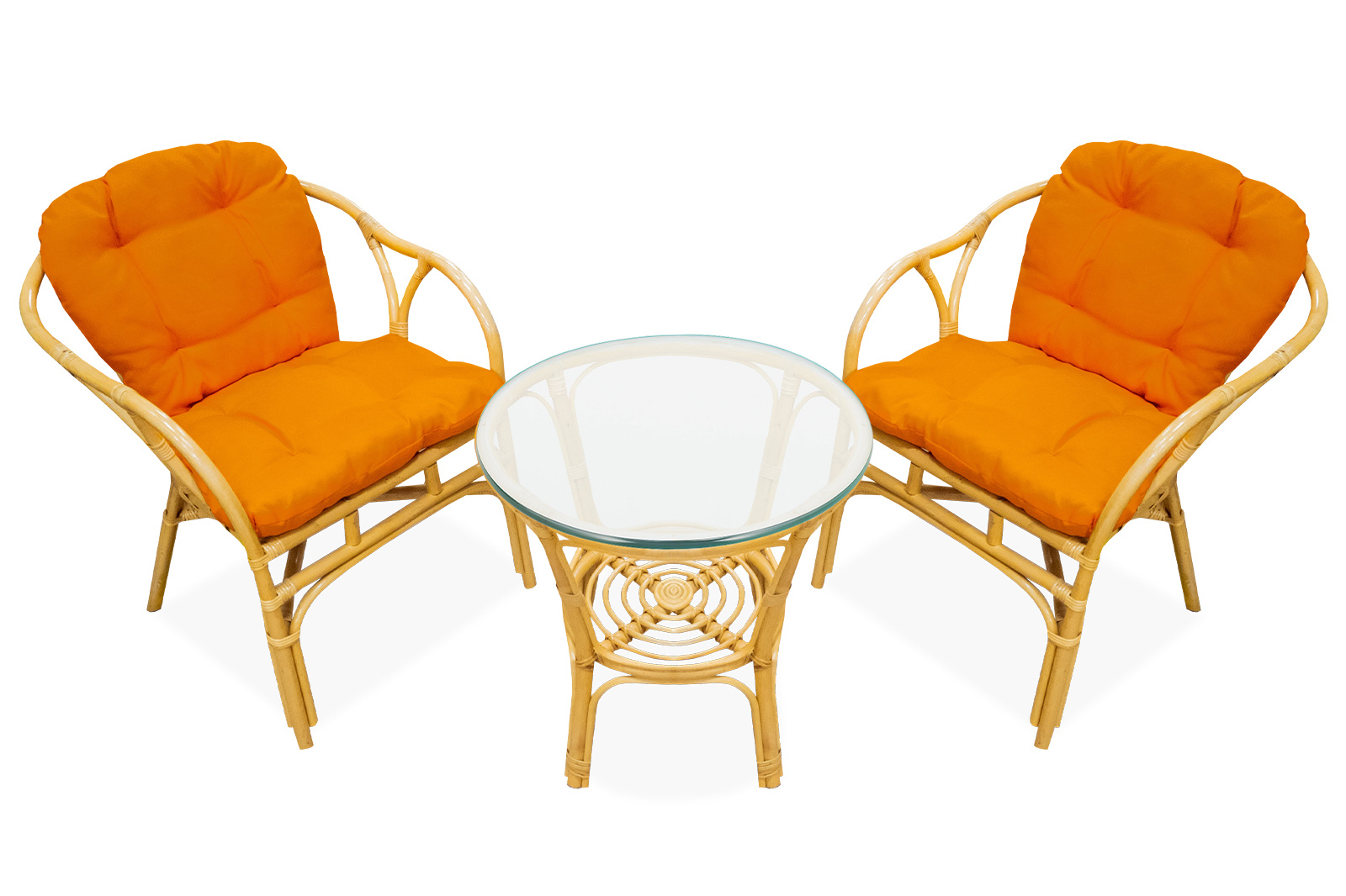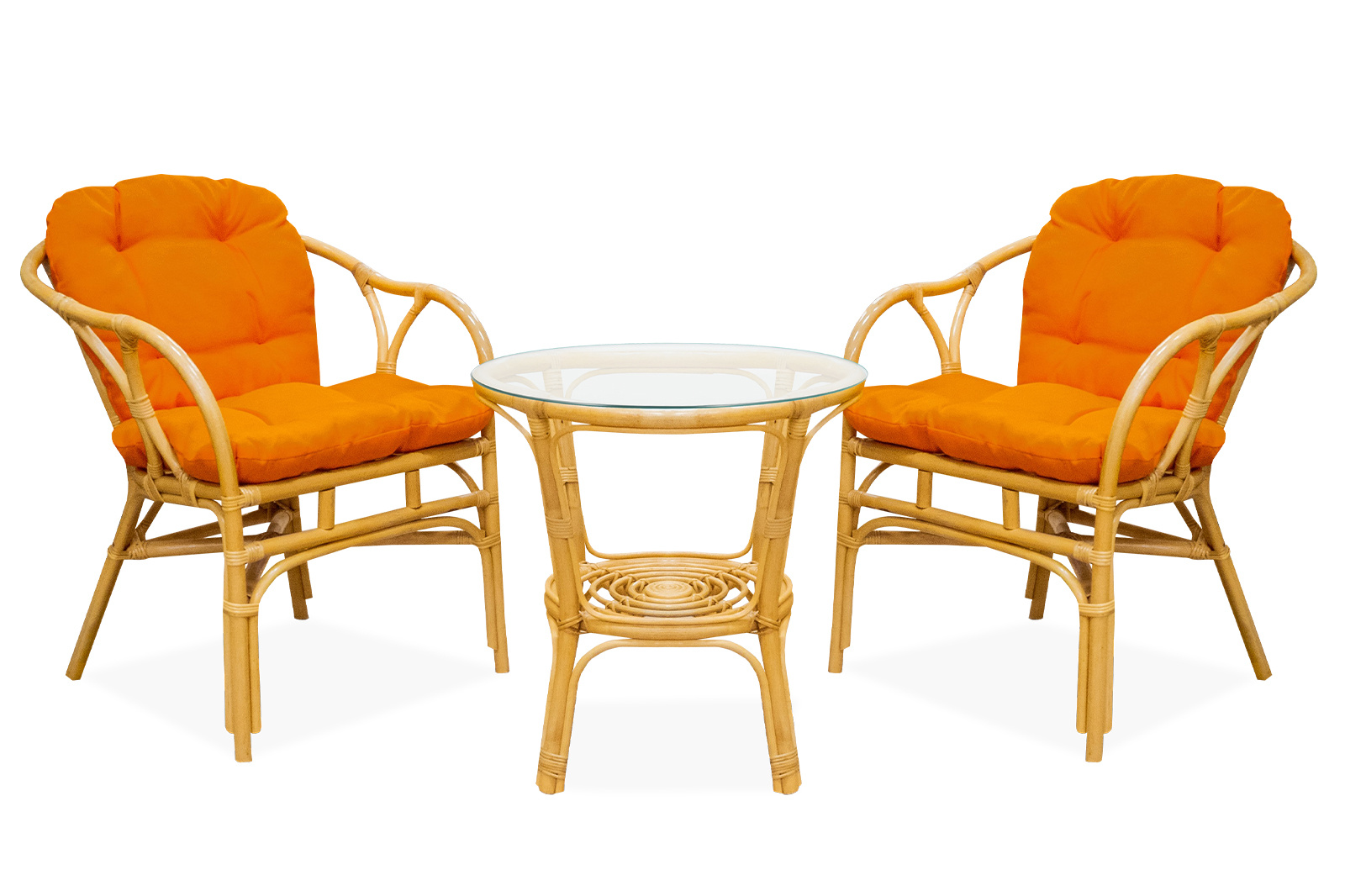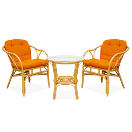 Kolekce obsahuje 2 ratanová křesla, a ratanový stolek se skleněnou deskou. Stolek má ve spodní části plochu na ukládání drobných věcí.