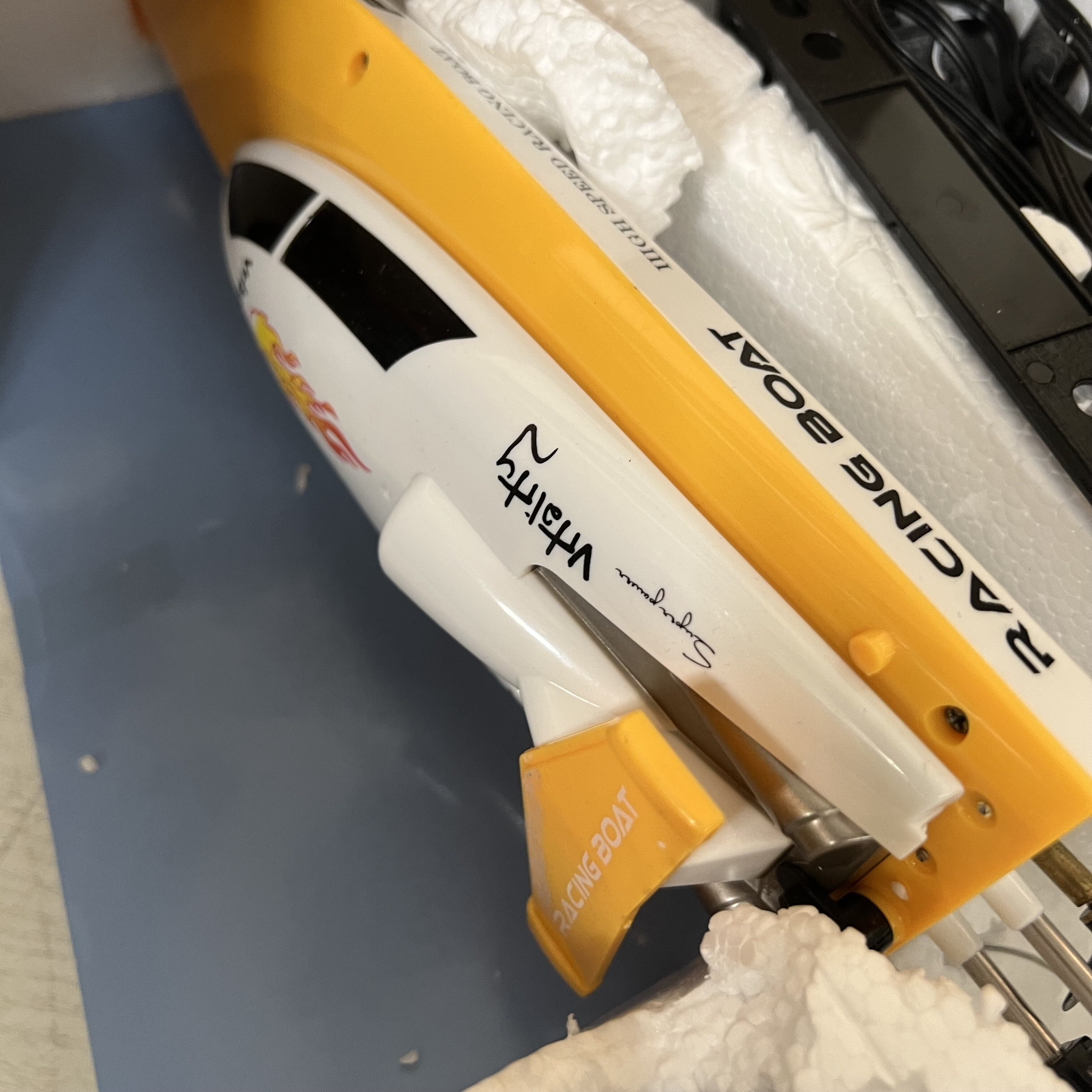 Motorový člun je vyroben z odolných materiálů s kovovými prvky v převodovce. Loď je řízena dvoukanálovým, plně proporcionálních vysílačem na frekvenci 2,4Ghz, nebude tedy problém pořádat závody! Se silným motorem člun ujede až 5,5m za sekundu. Kromě toho má rádio akcelerační a otáčivý trimmer, který je v této třídě neobvyklý.