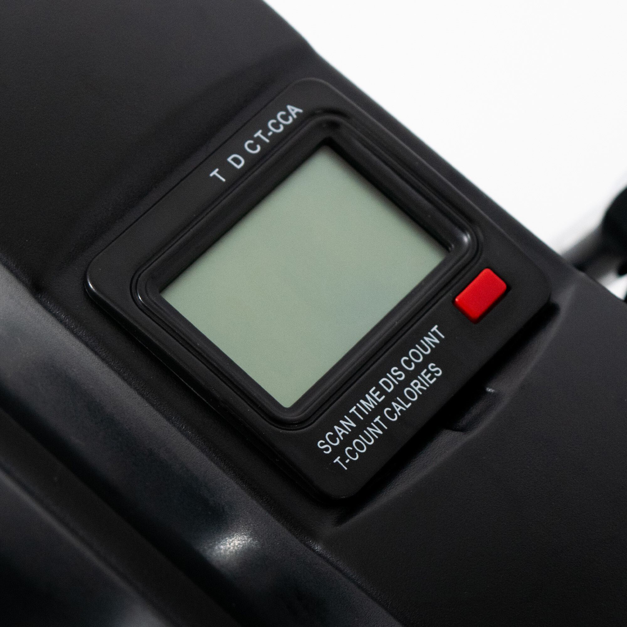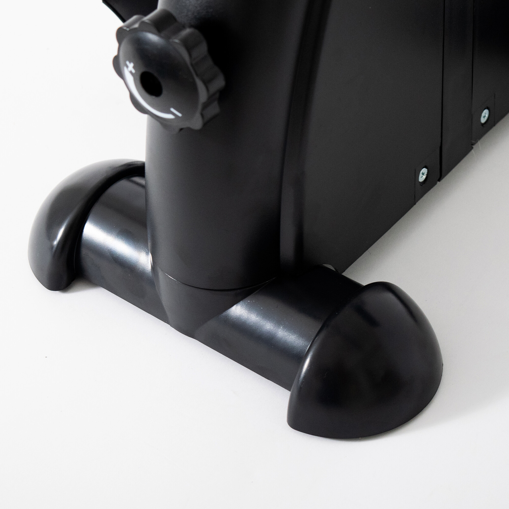 Aretačním kolečkem snadno nastavíte odpor, tréninkový počítač s LCD displejem napájený bateriemi potom zobrazí ujetou vzdálenost, čas, spálené kalorie a také počítá otáčky pedálů. Chcete-li procvičovat nohy, posaďte se na pohodlné křeslo nebo židli.