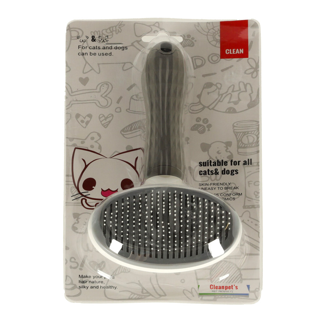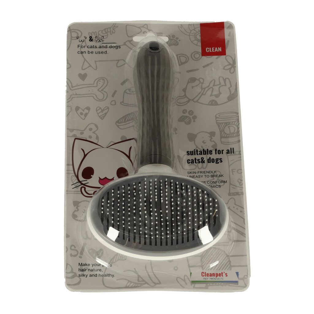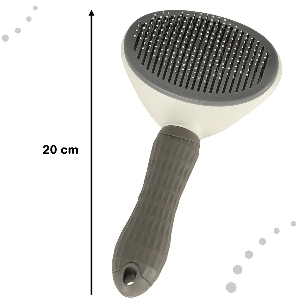 Kartáč je navíc vybaven samočisticím mechanismem. To znamená, že při česání zvířete nemusíte vyčesávat srst mezi zuby kartáče. Stačí stisknout tlačítko a všechny vyčesané vlasy se z kartáče snadno oddělí.