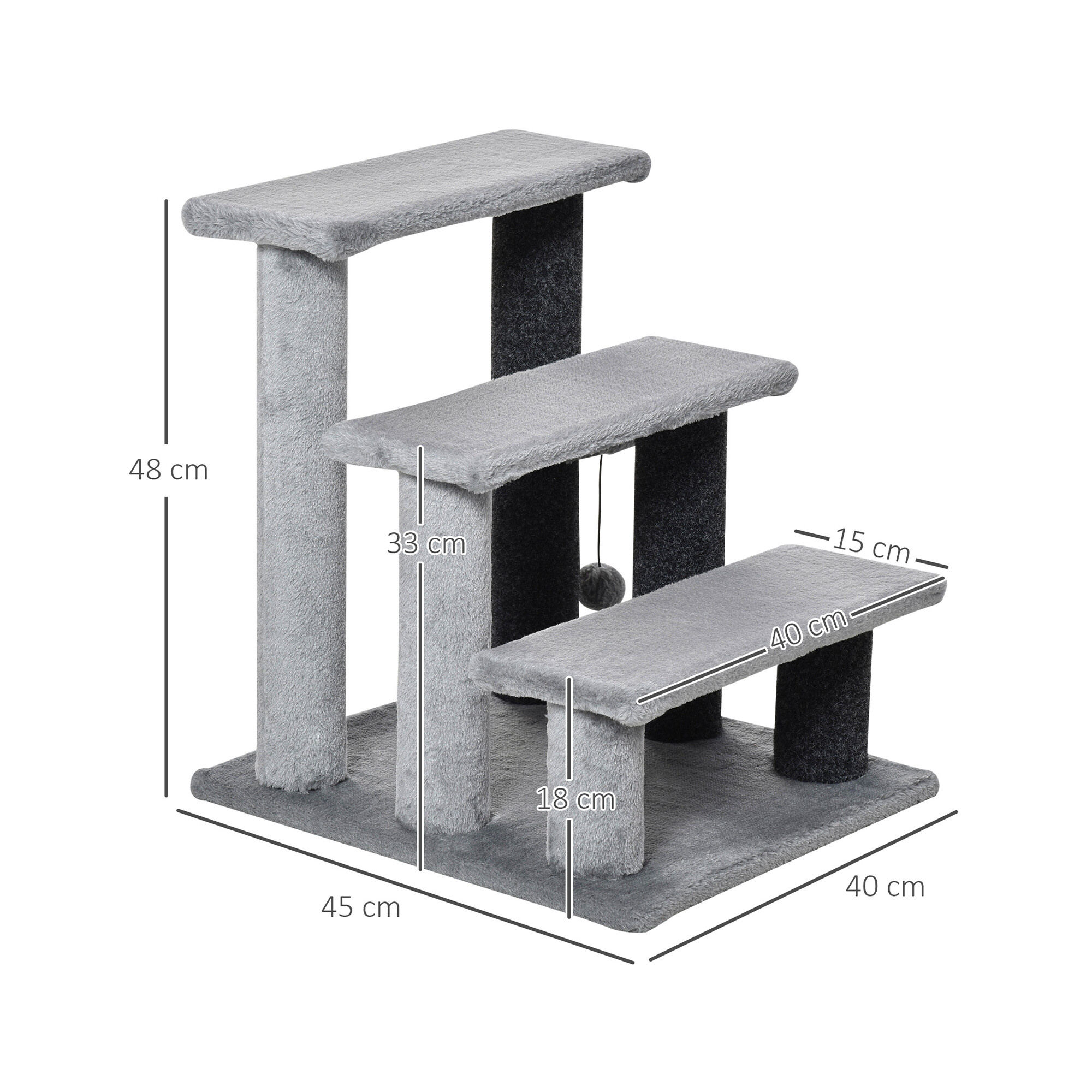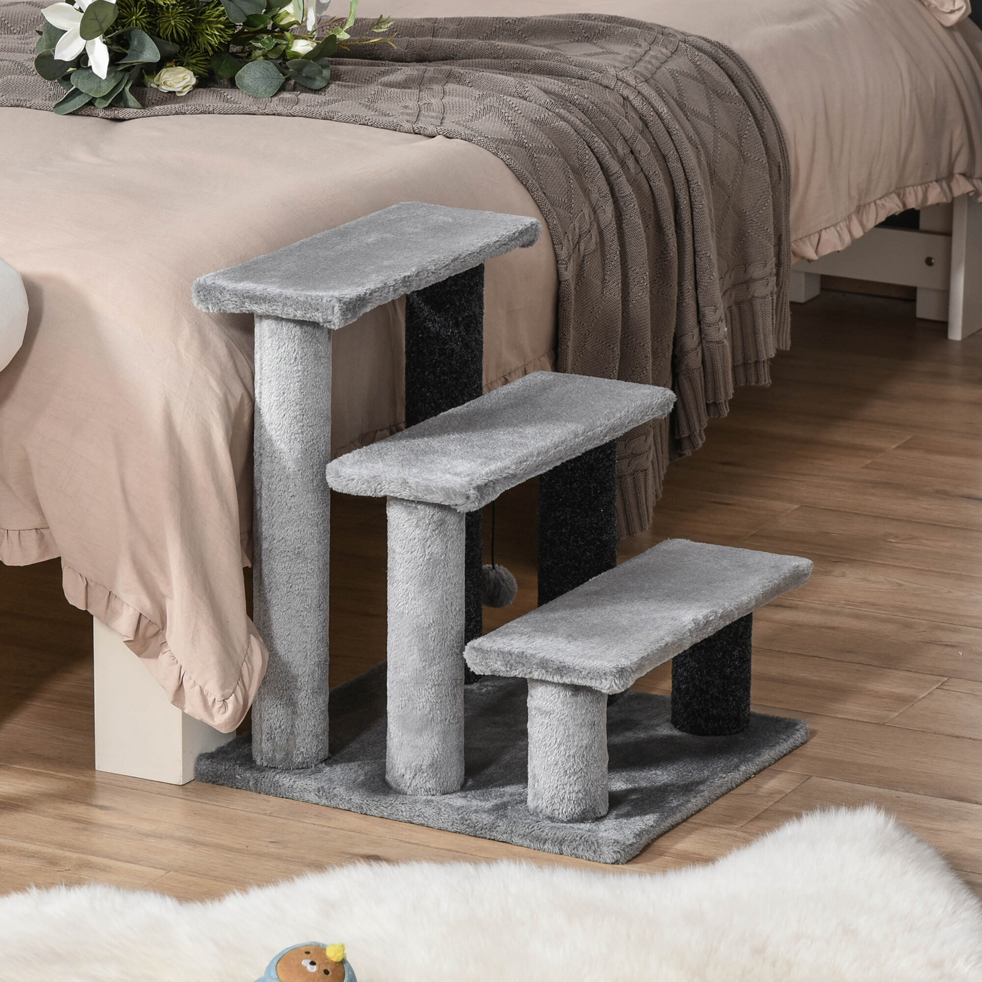Aga Schůdky pro kočky nejsou jen o praktičnosti. Jsou navrženy tak, aby poskytovaly i zábavu a relaxaci. Každý schod je čalouněn měkkým plyšem, který je příjemný na dotek a láká kočky k odpočinku. Navíc je součástí schodů i měkký hrací míček, který uspokojí herní a lovecký instinkt vaší kočky.