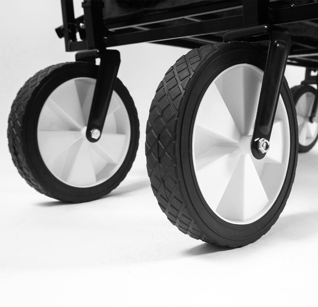 Díky velkému nákladovému prostoru vejde do vozíku vše potřebné a převezete jej na odolných plastových kolech.