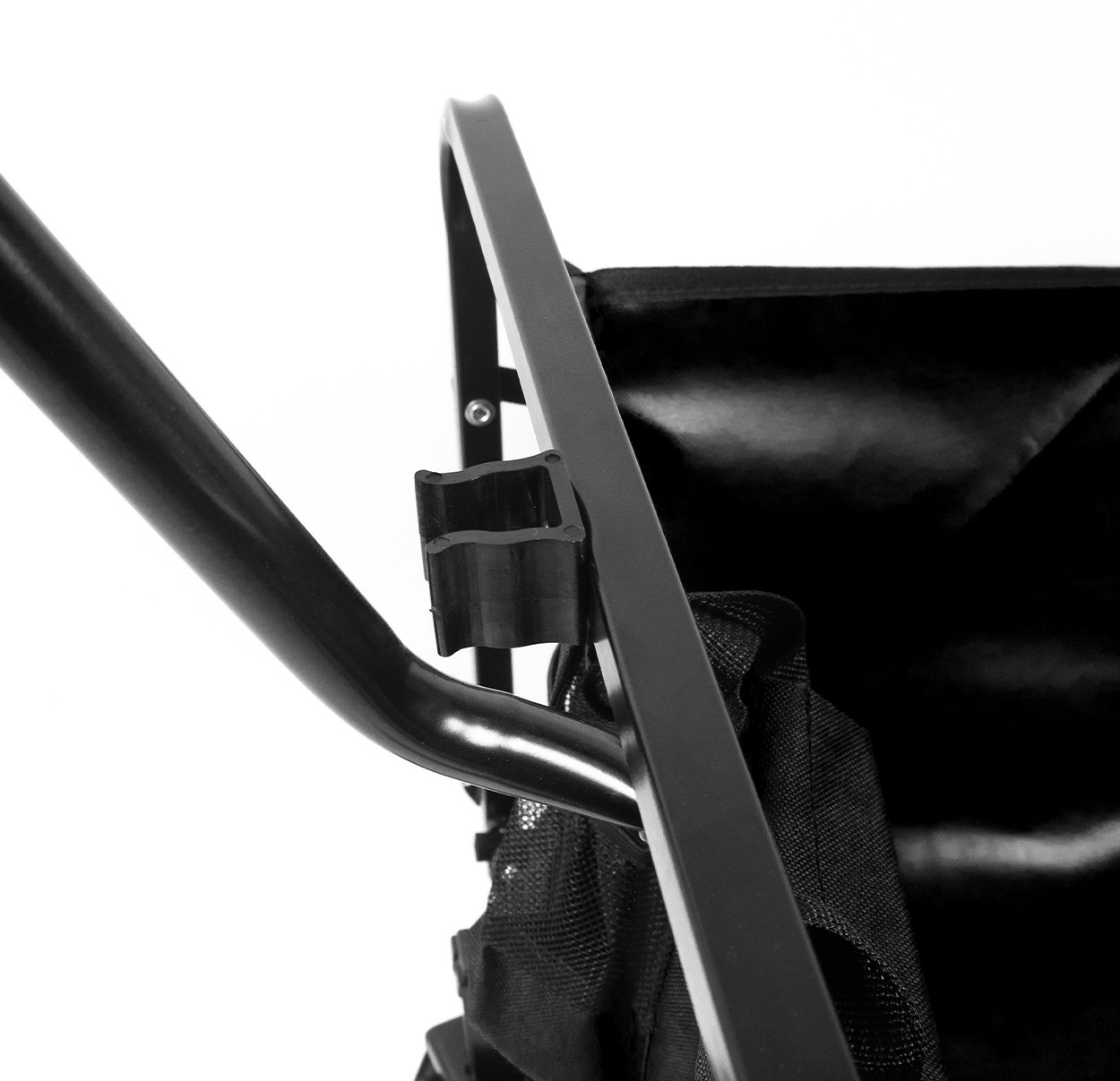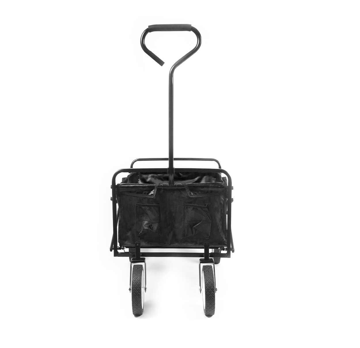 Pomocí tyče na přední straně se da vozík jednoduše posouvat. Na přední straně vozíku také najdete dvě síťované kapsy k odložení menších předmětů.
