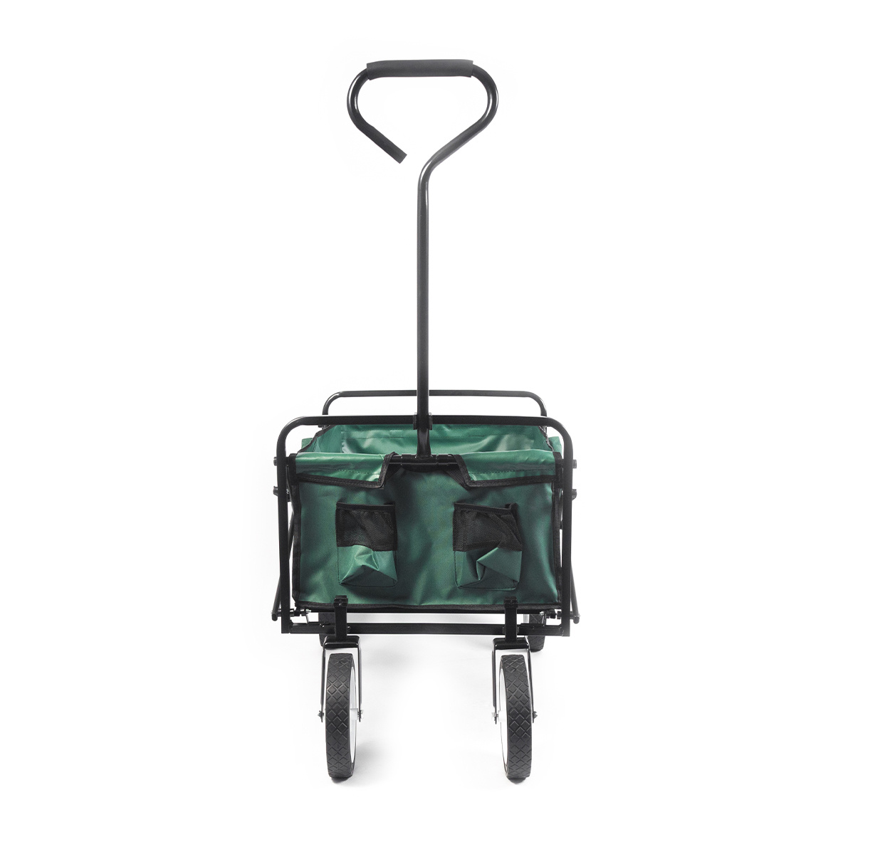 Pomocí tyče na přední straně se da vozík jednoduše posouvat. Na přední straně vozíku také najdete dvě síťované kapsy k odložení menších předmětů.