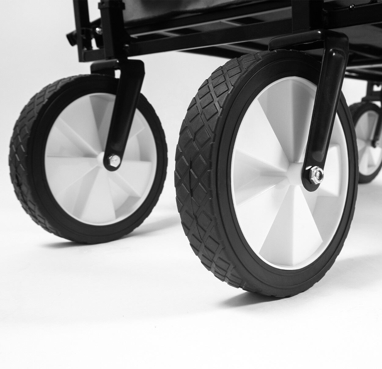 Díky velkému nákladovému prostoru vejde do vozíku vše potřebné a převezete jej na odolných plastových kolech.