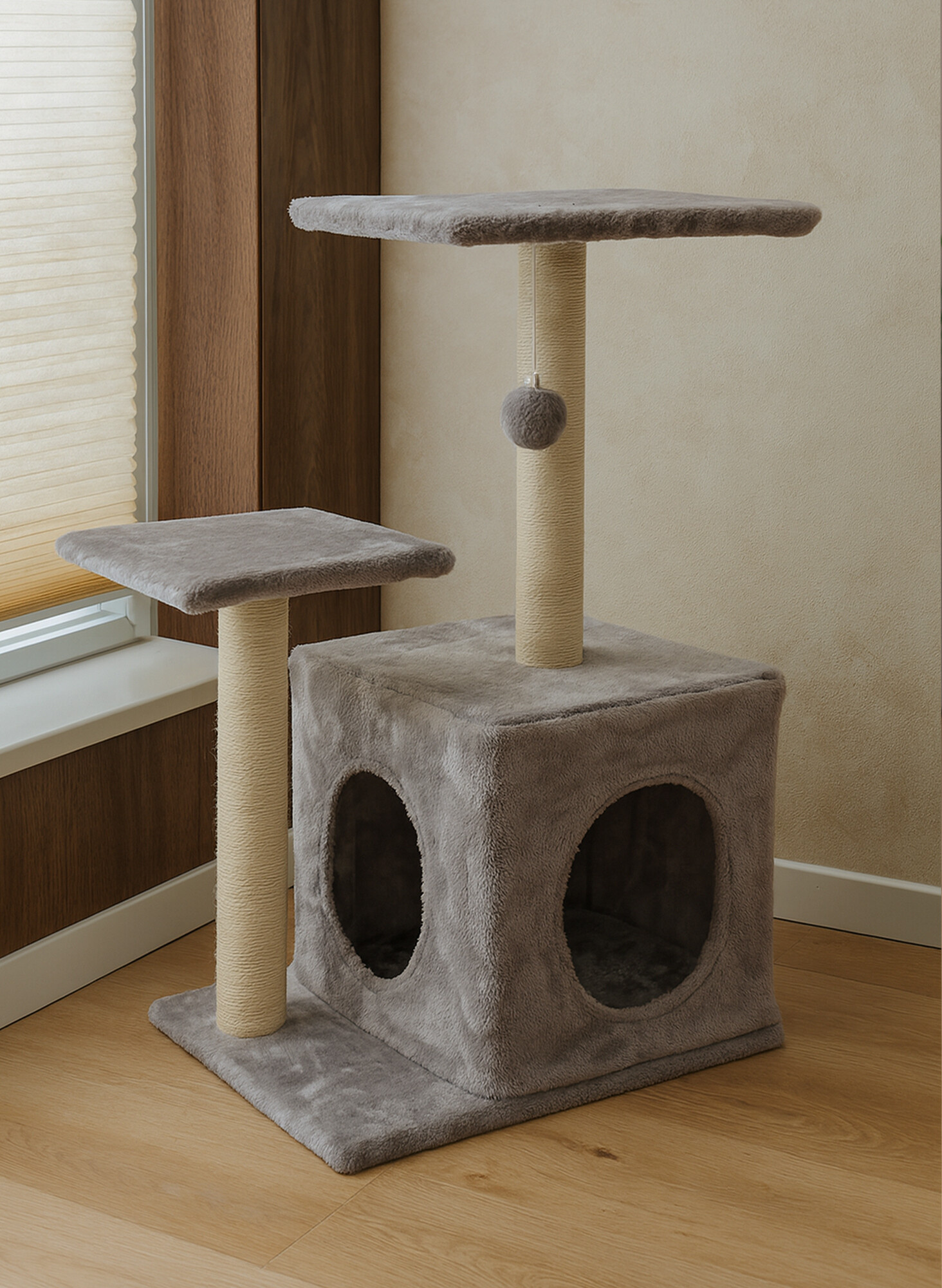 Škrabací strom omotaný kvalitním a silným sisalem jí kdykoliv poslouží k nabroušení drápků, aniž byste riskovali, že to udělá přesně tam, kde nechcete. Současně to bude díky hebkému plyšu její oblíbené místo k odpočinku a hře.