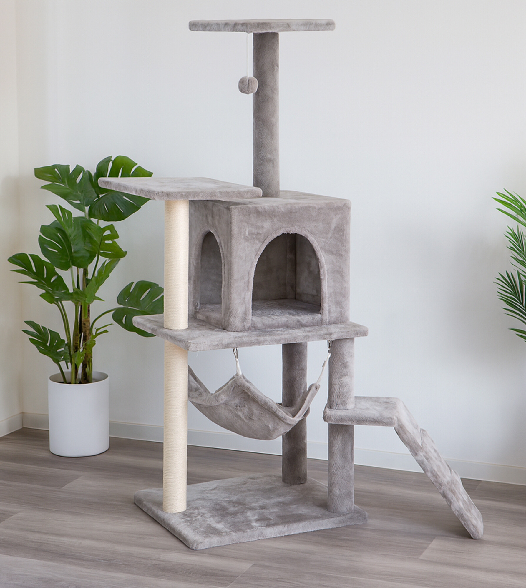 Škrabací strom omotaný kvalitním a silným sisalem jí kdykoliv poslouží k nabroušení drápků, aniž byste riskovali, že to udělá přesně tam, kde nechcete. Současně to bude díky hebkému plyšu její oblíbené místo k odpočinku a hře.