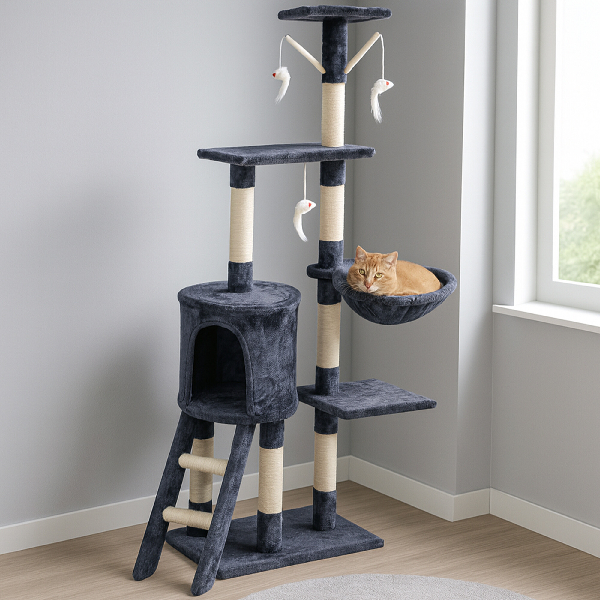 Škrabací strom omotaný kvalitním a silným sisalem jí kdykoliv poslouží k nabroušení drápků, aniž byste riskovali, že to udělá přesně tam, kde nechcete. Současně to bude díky hebkému veluru její oblíbené místo k odpočinku a hře.