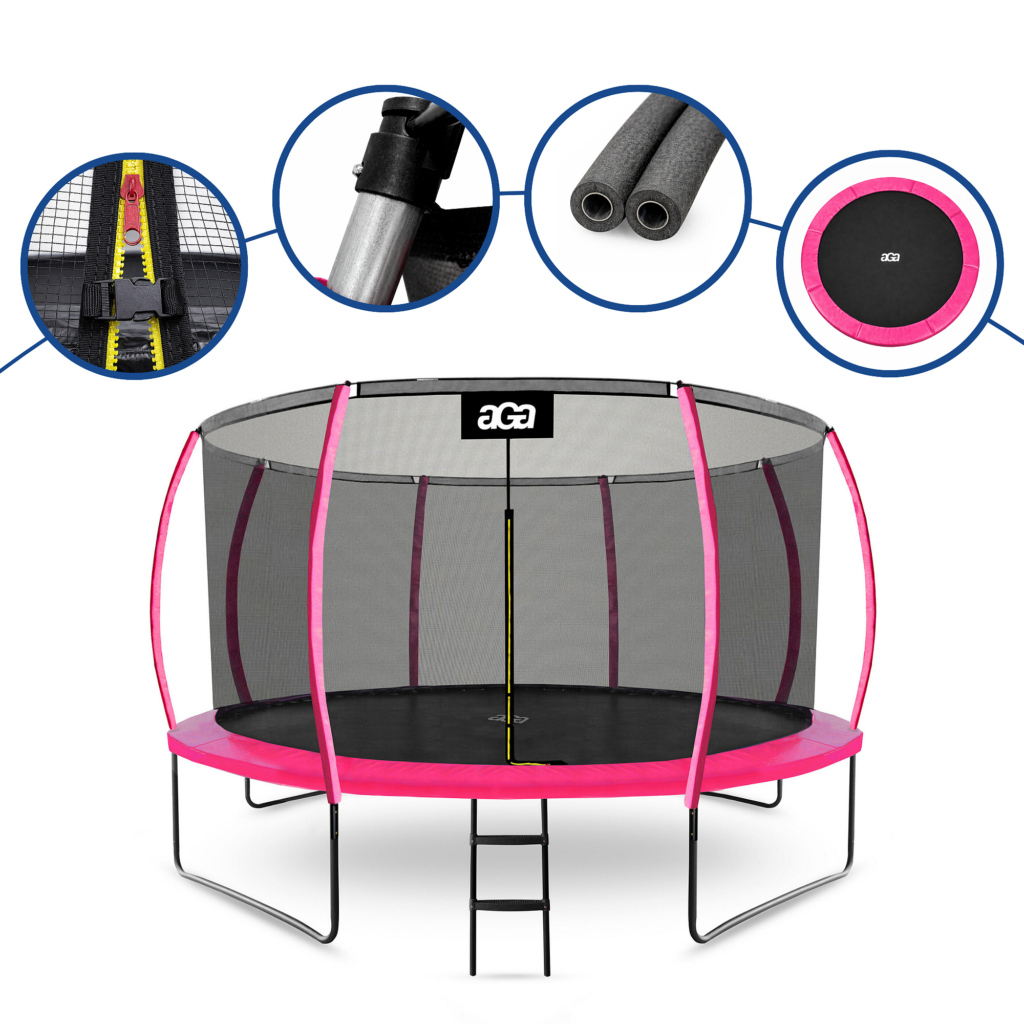 Aga SPORT EXCLUSIVE Trampolína 366 cm Růžová + ochranná síť + žebřík