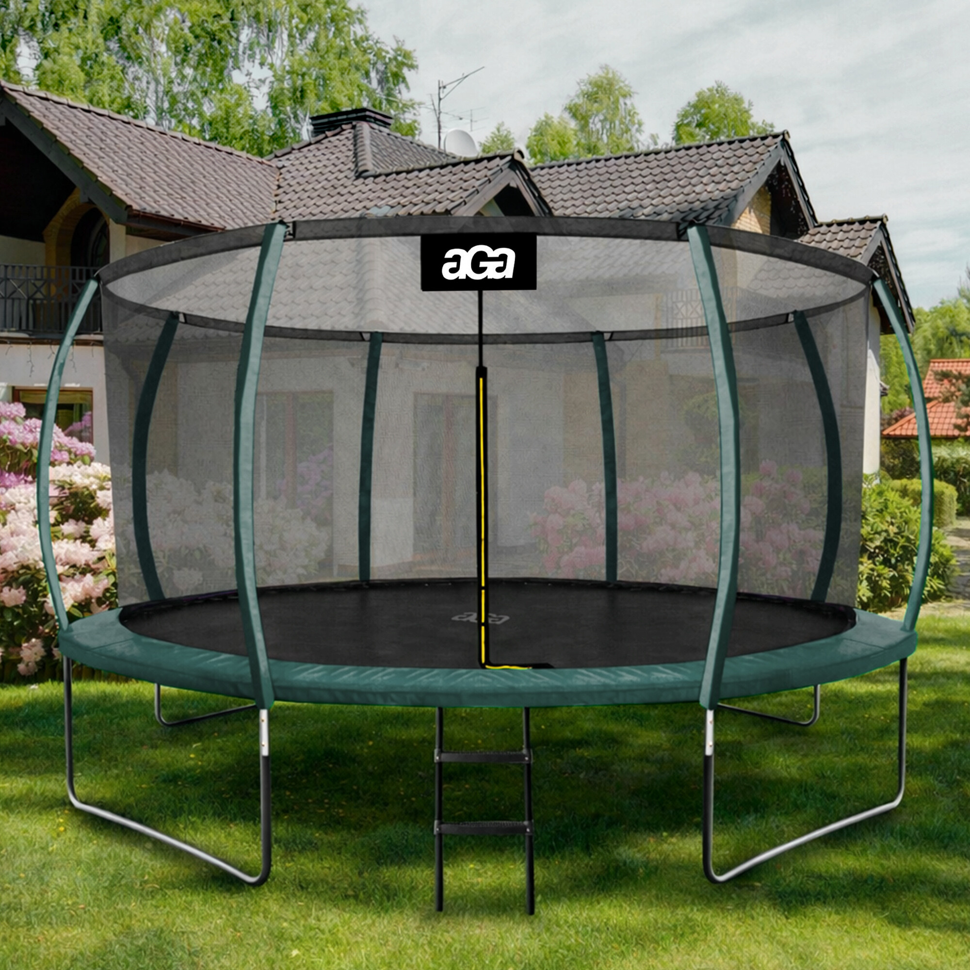 Aga SPORT EXCLUSIVE Trampolína 366 cm Tmavě zelená + ochranná síť + žebřík