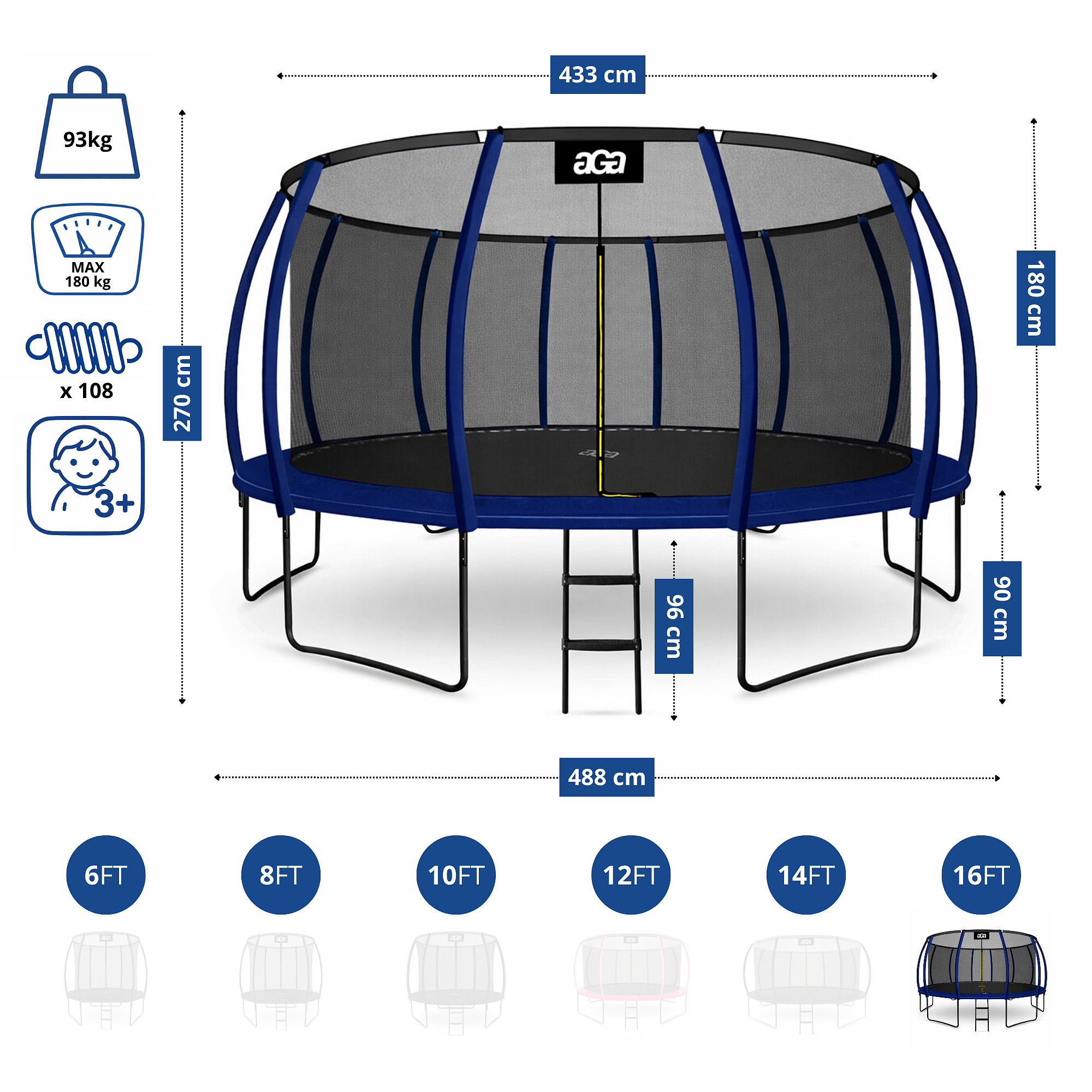 - Trampolína 500 cm (16 ft) - (konstrukce + tyče + pěnové ochrany tyčí + šrouby)