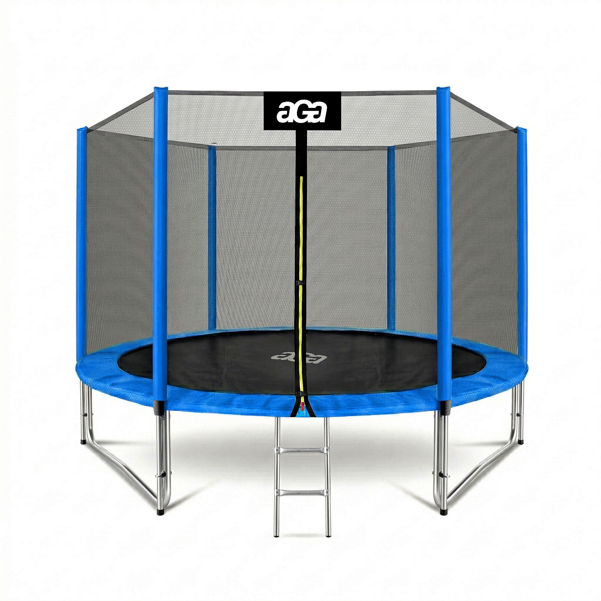 Specifikace trampolíny Aga SPORT PRO 305 cm Modrá s ochrannou sítí a žebříkem.