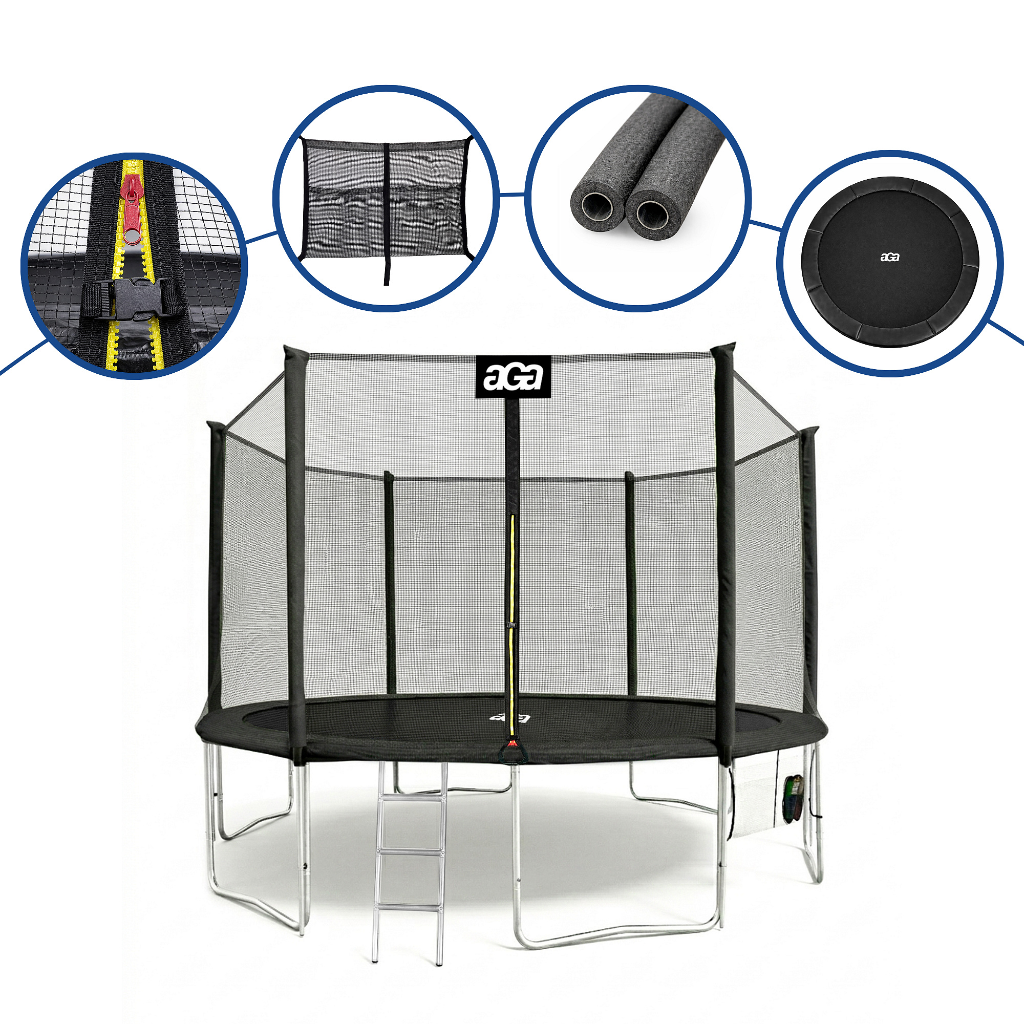 Specifikace trampolíny Aga SPORT PRO 430 cm s ochrannou sítí.