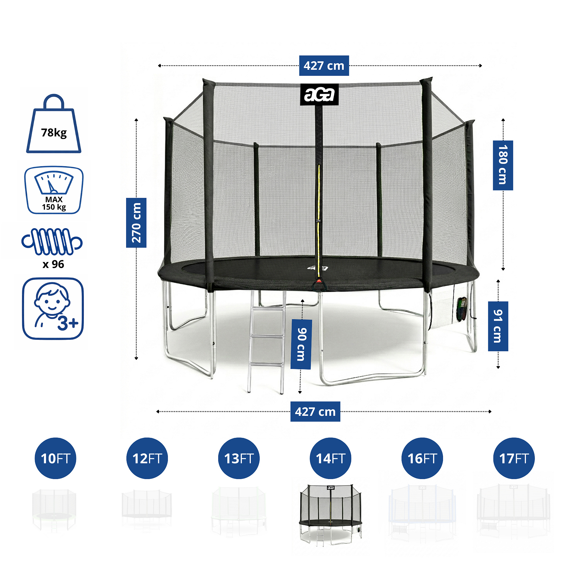 - Průměr trampolíny: 430 cm (14 ft)