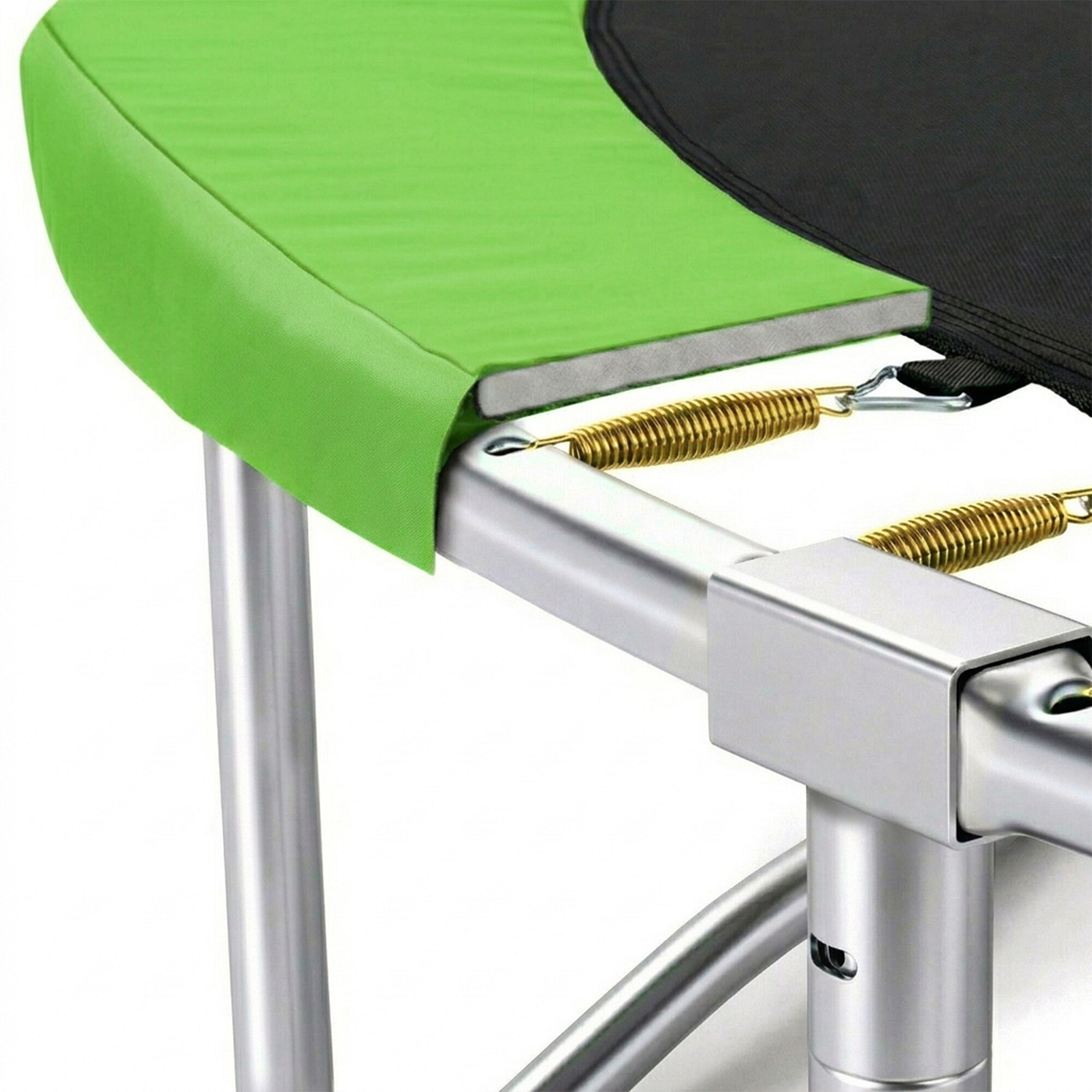 Maximální možnou bezpečnost pak zajištuje polstrovaný obvodový pás (kryt pružin), který překrývá pružiny po celém obvodu trampolíny.