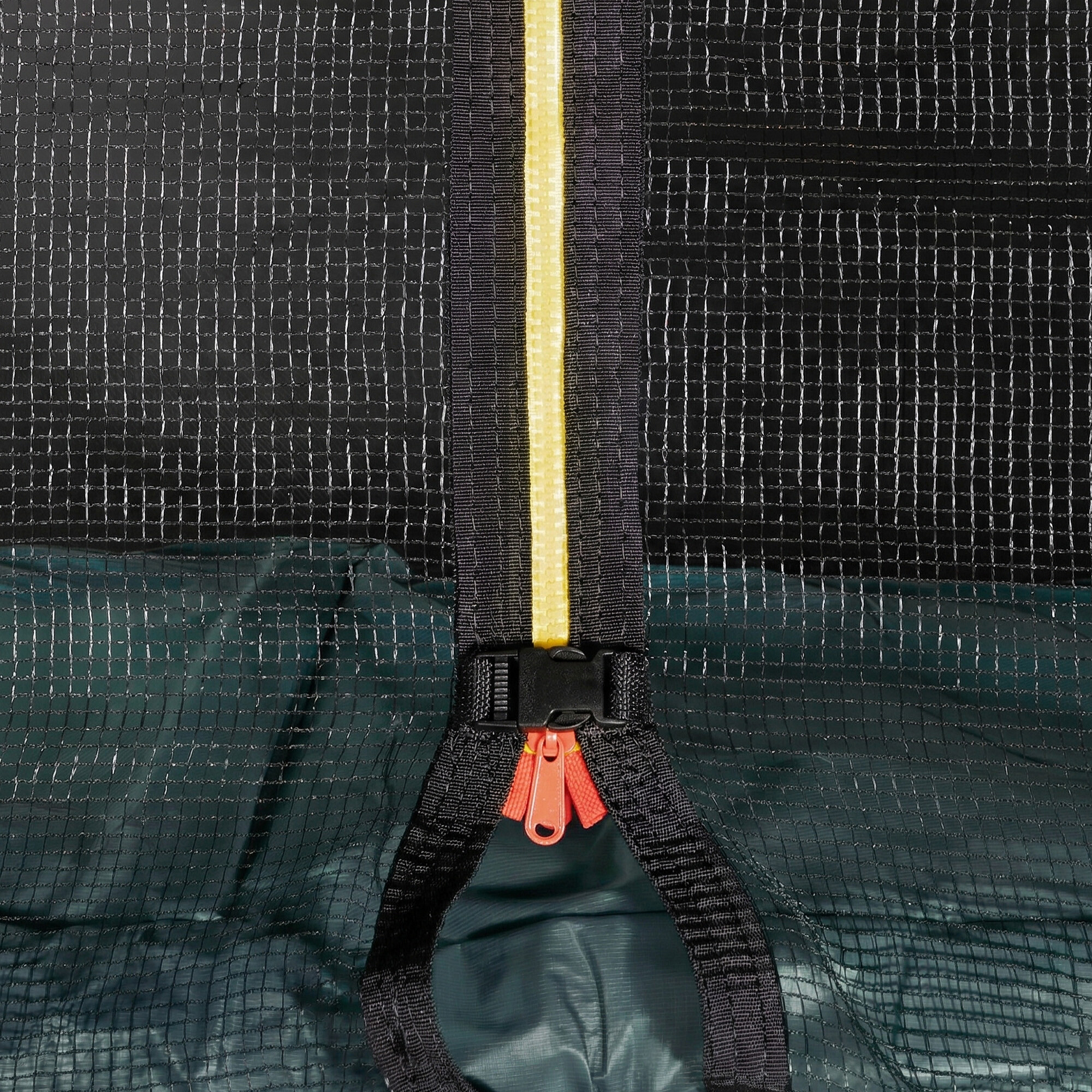 Horní ochranná síť vyrobená z Super-heavy duty PE materiálu, má vstup opatřený zipem a zajištěným pojistkou proti samovolnému rozepnutí.