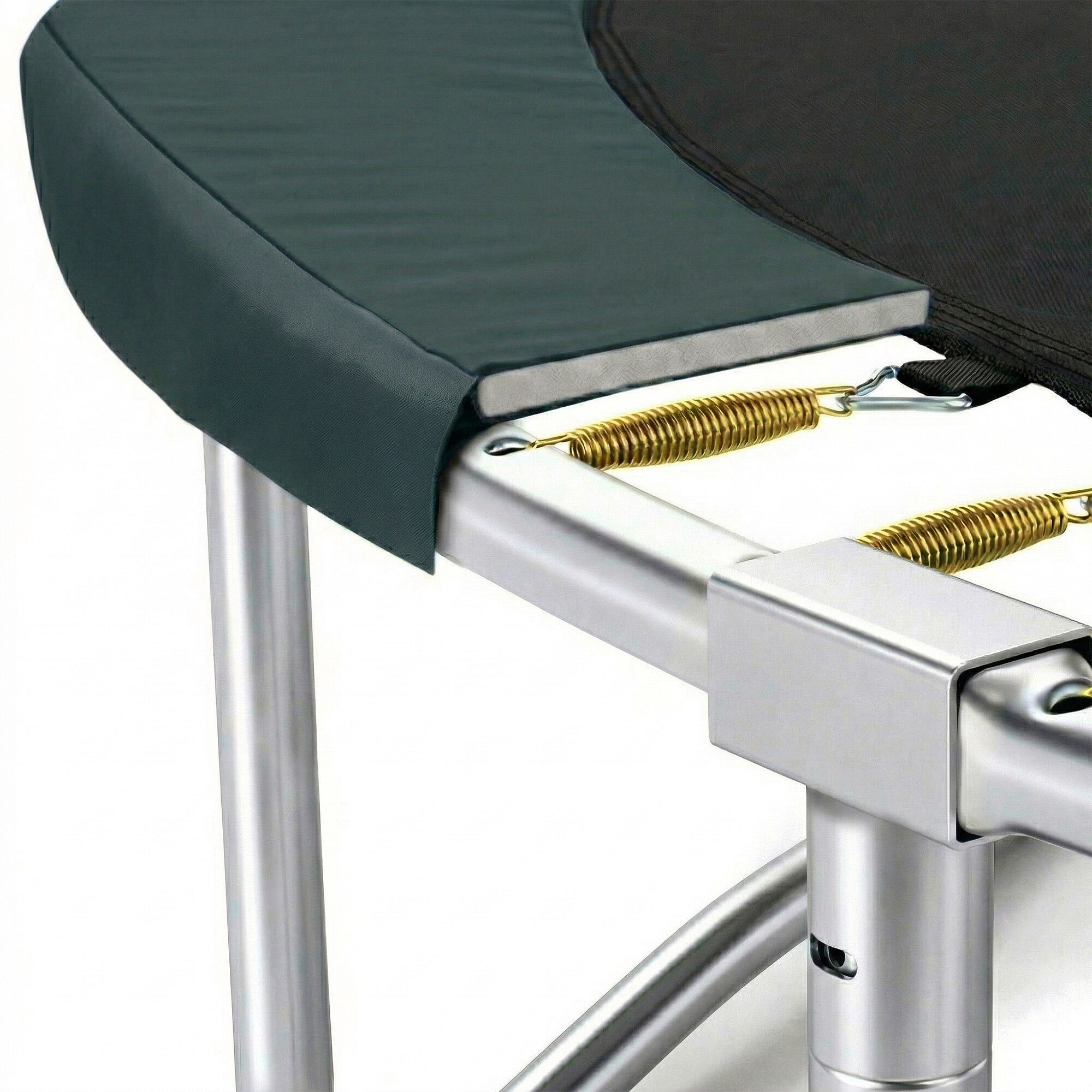 Maximální možnou bezpečnost trampolíny pak zajištuje polstrovaný obvodový pás (kryt pružin), vyrobený z PVC, který překrývá pružiny po celém obvodu trampolíny.