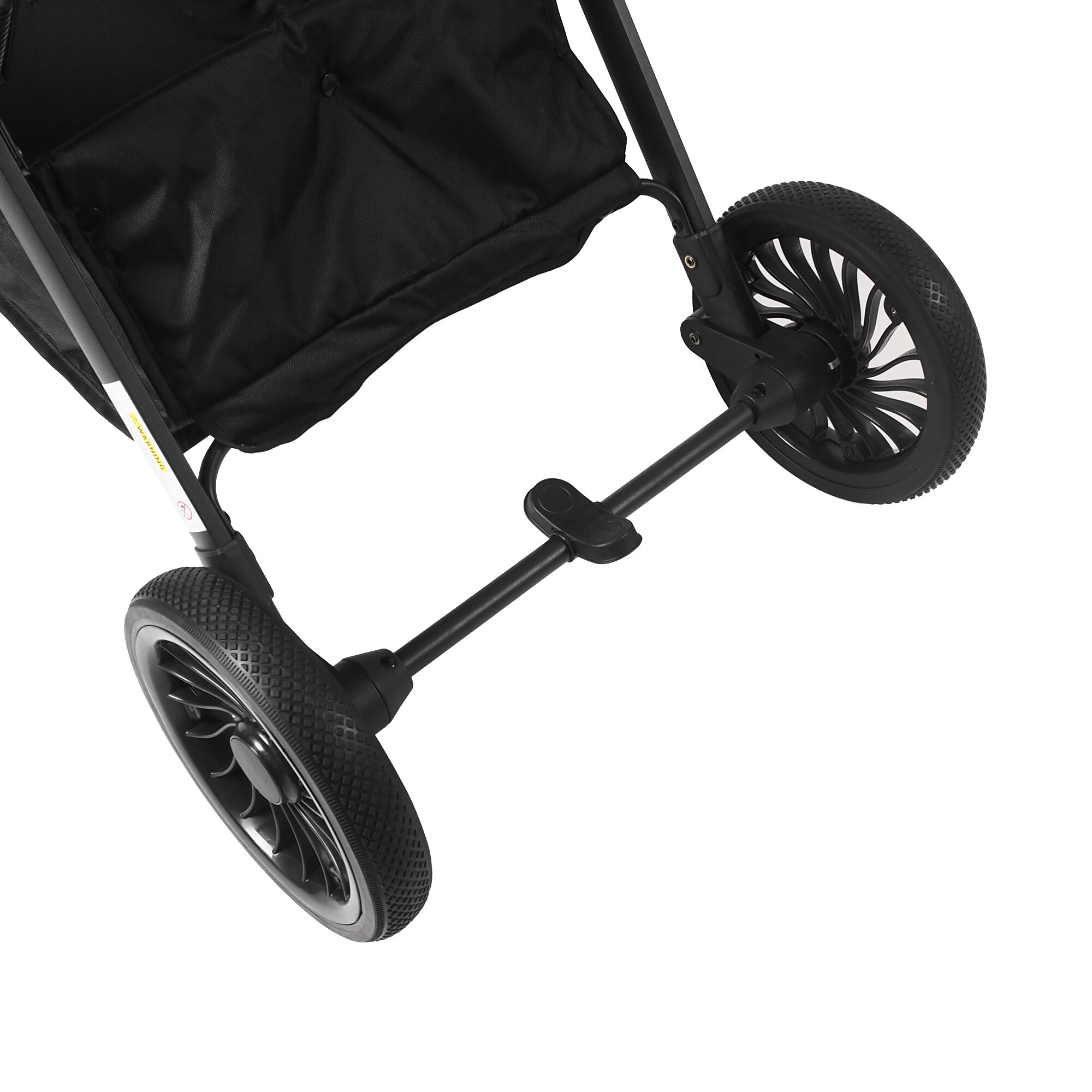 Kočárek je postaven na pevném a lehkém hliníkovém rámu, který zajišťuje dlouhou životnost a odolnost. Tento rám je navržen tak, aby poskytoval maximální stabilitu a zároveň byl snadno ovladatelný.