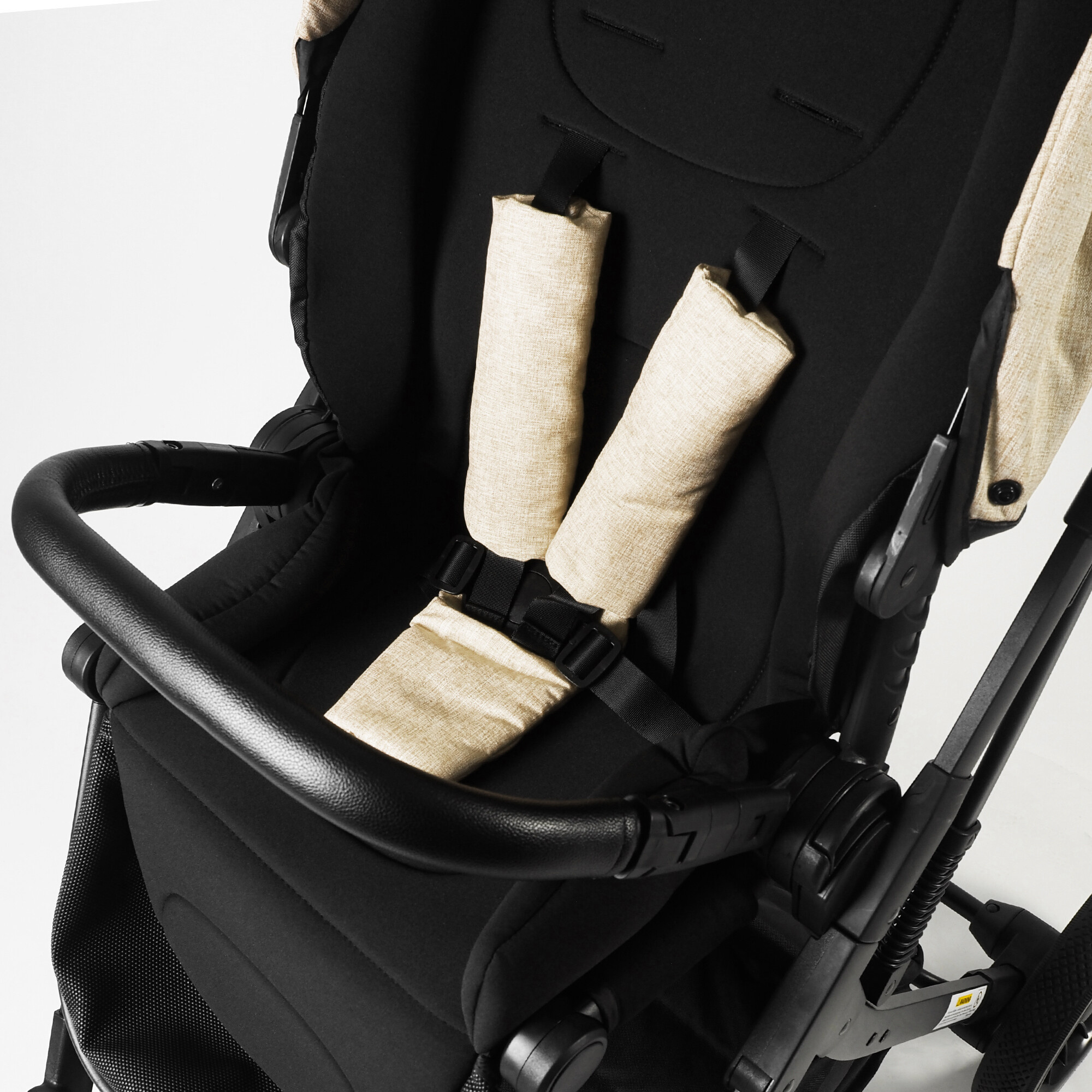 Bezpečnost vašeho dítěte je pro nás prioritou. Kočárek je vybaven zadními koly s centrální brzdou, která zajišťuje stabilitu a bezpečnost při zastavení. Navíc je kočárek vybaven 5-bodovými bezpečnostními pásy, které pevně drží vaše dítě na místě a chrání ho před vypadnutím.