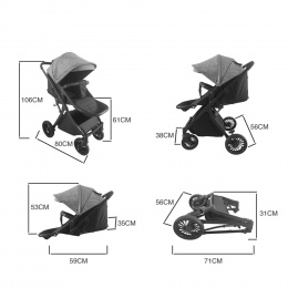 • Rozměry rozloženého kočárku: 106 x 56 x 80 cm