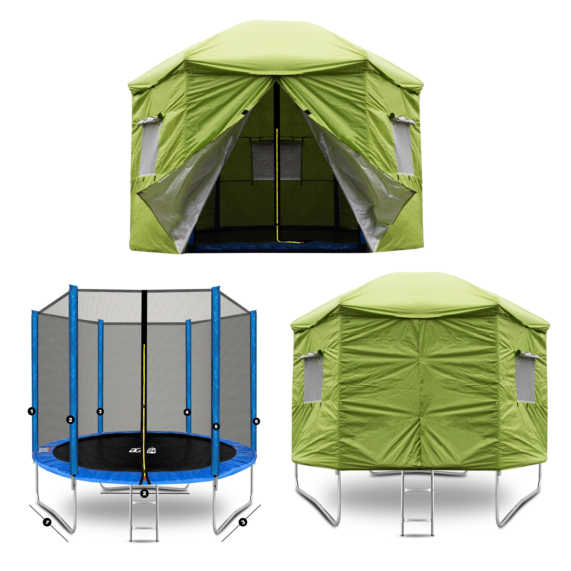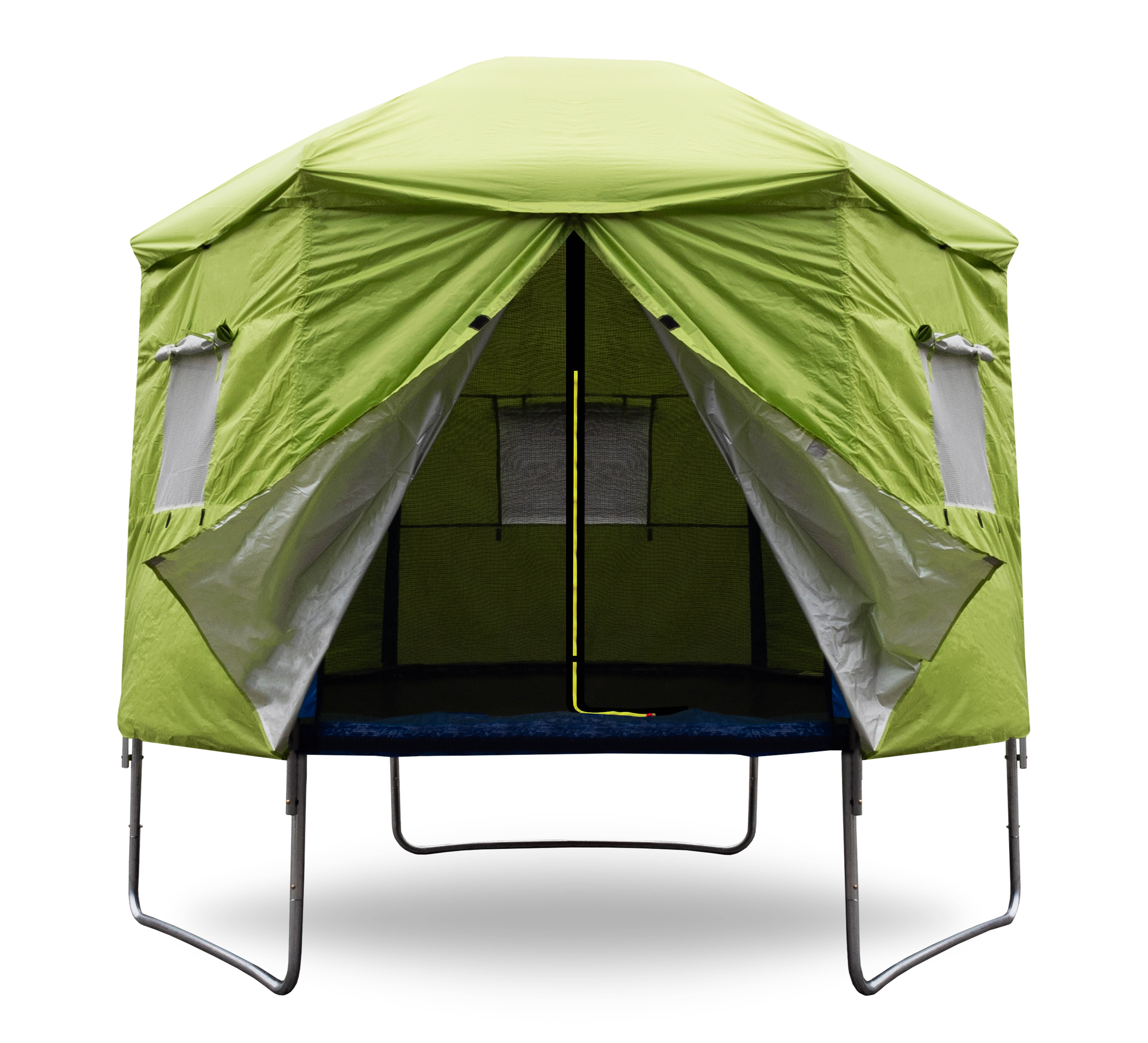 A v době kdy trampolína není aktivně využívána, pomáhá stan chránit odrazovou plochu před znečištěním a UV zářením.