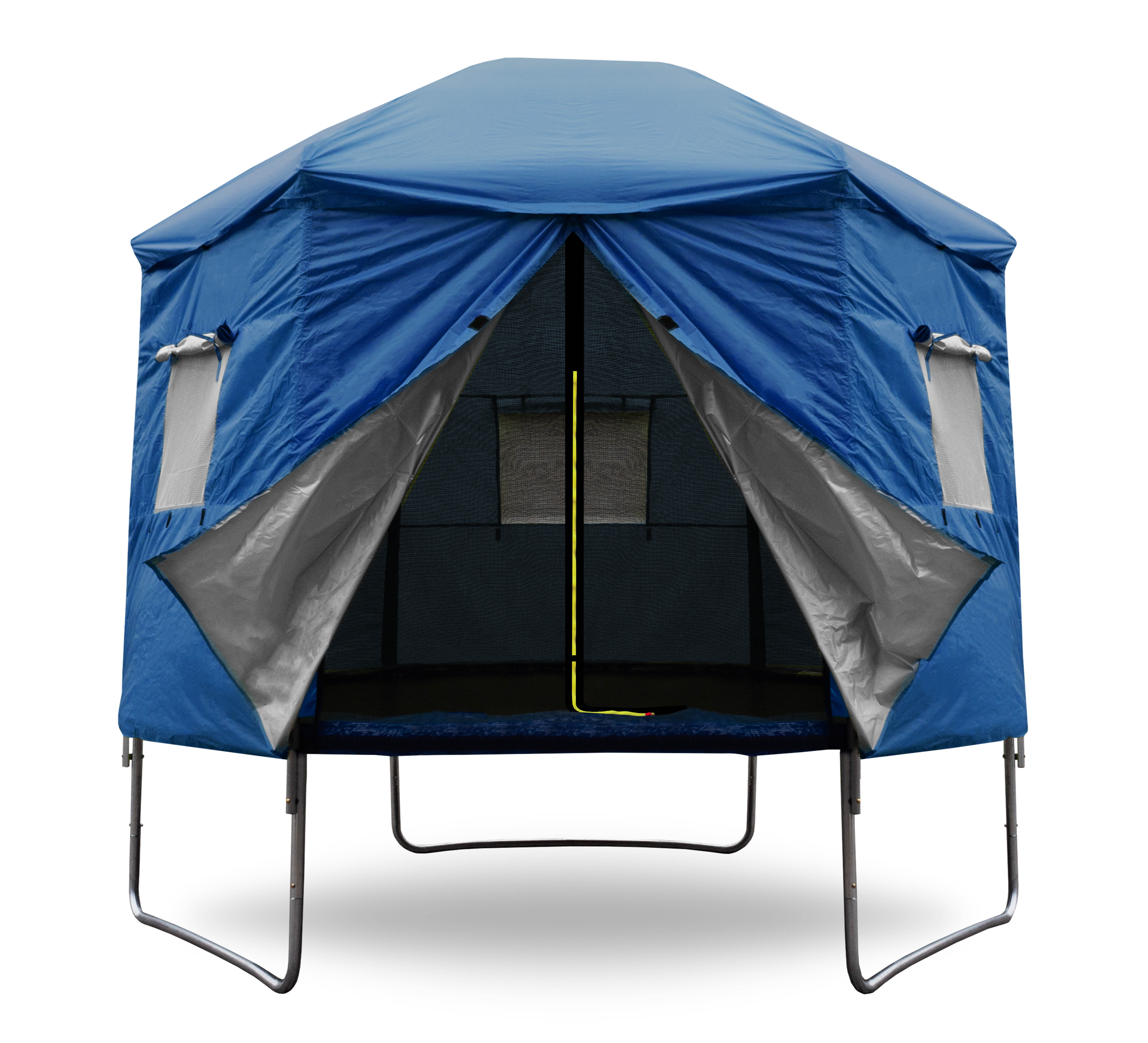 A v době kdy trampolína není aktivně využívána, pomáhá stan chránit odrazovou plochu před znečištěním a UV zářením.