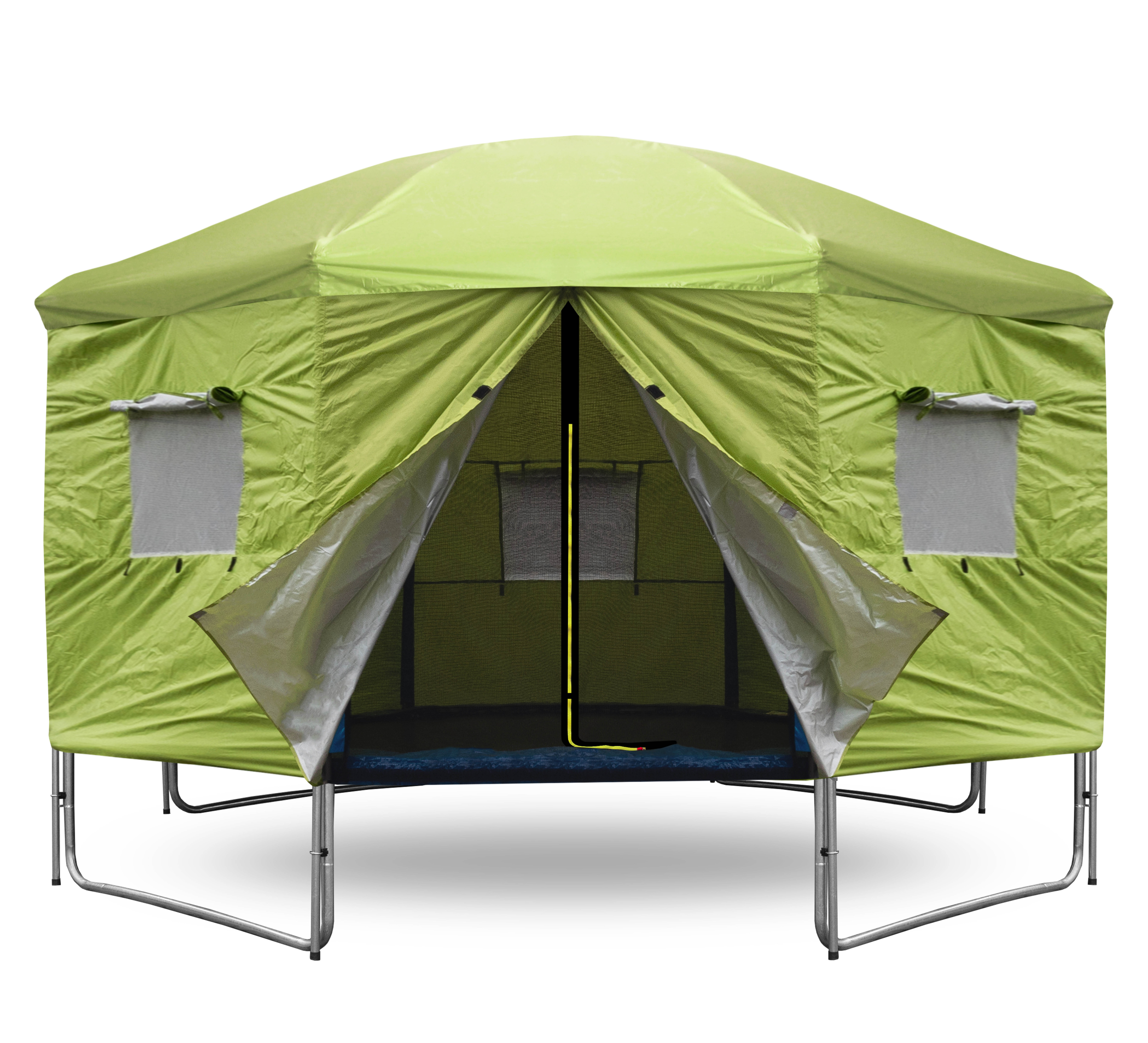 A v době kdy trampolína není aktivně využívána, pomáhá stan chránit odrazovou plochu před znečištěním a UV zářením.