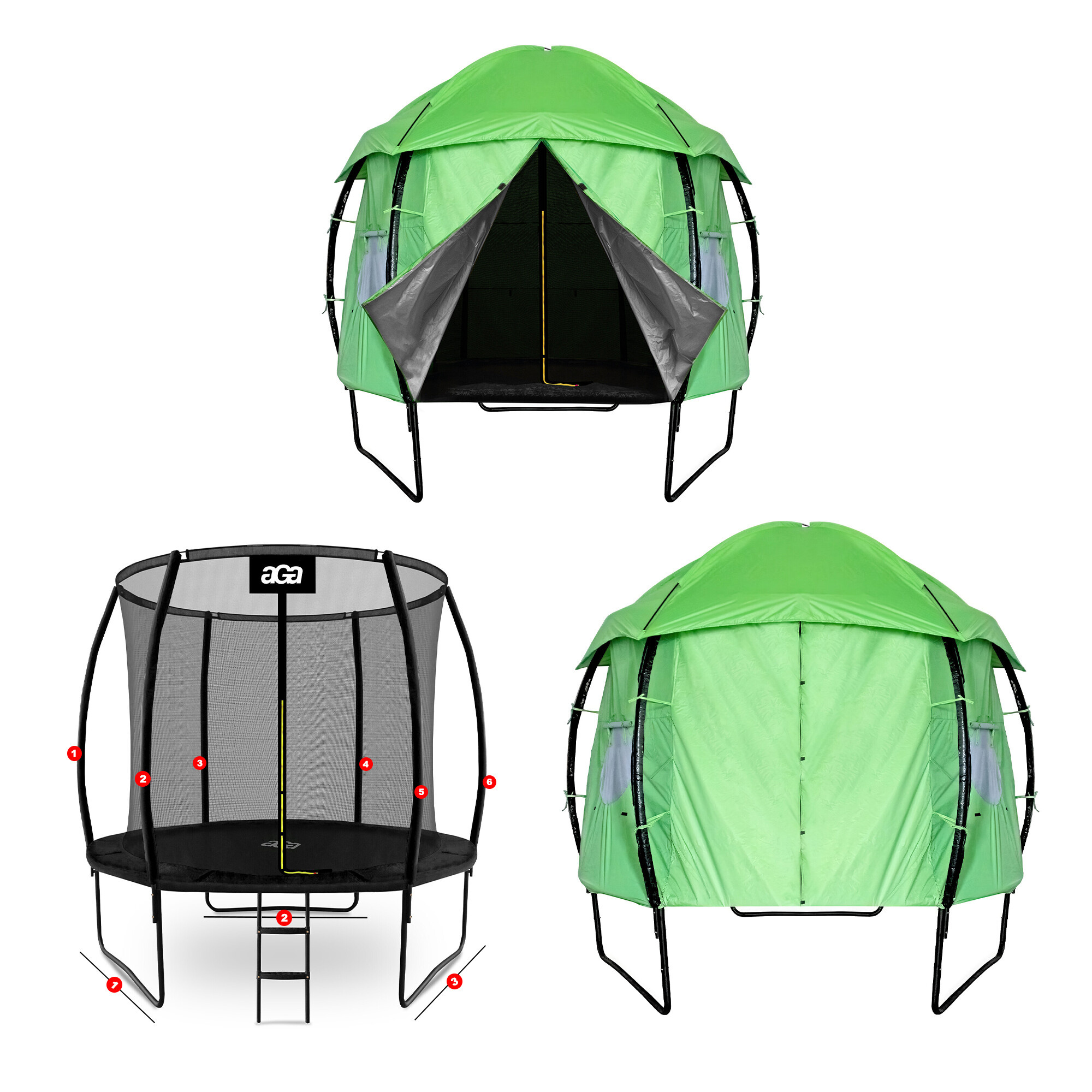 A v době kdy trampolína není aktivně využívána, pomáhá stan chránit odrazovou plochu před znečištěním a UV zářením.