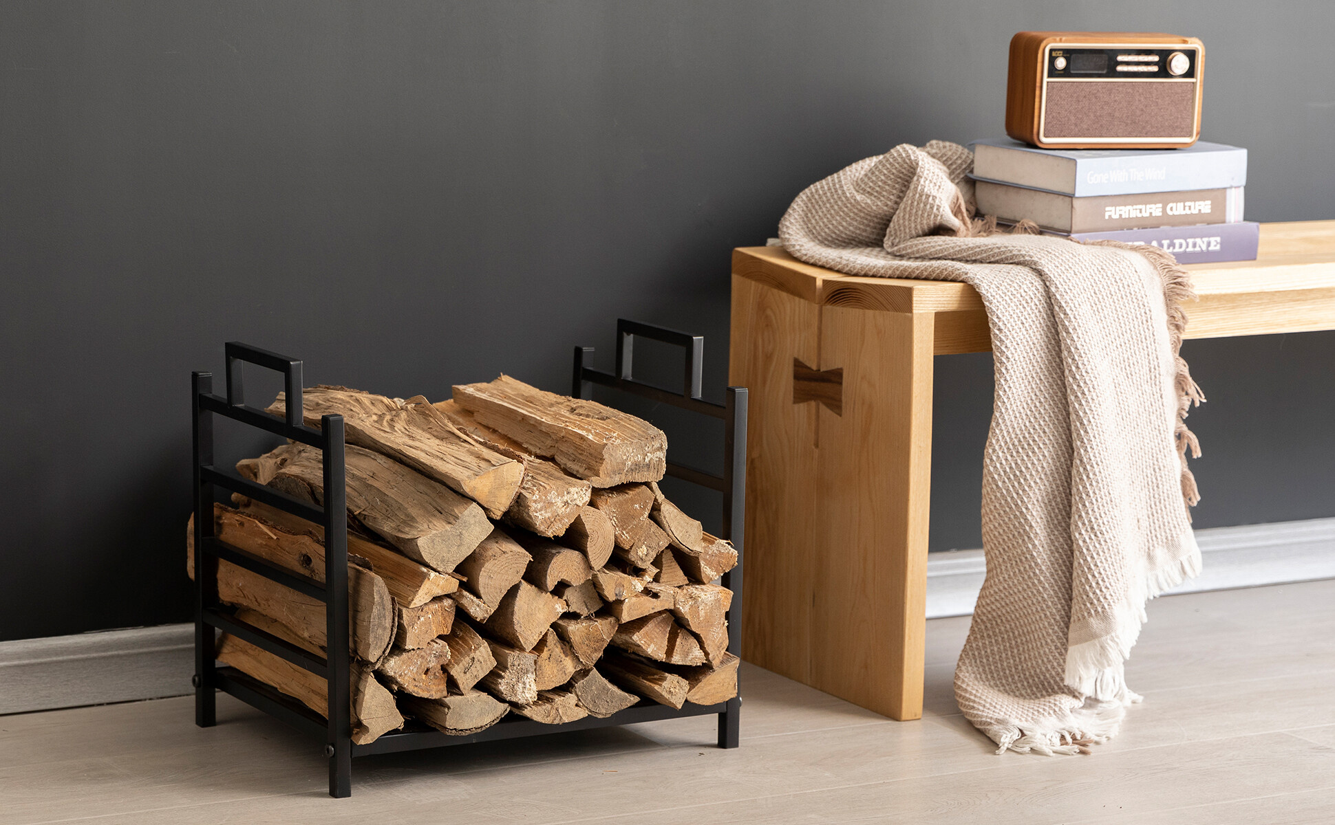 Kromě uskladnění, plní svým zajímavým designem i estetickou funkci a udržuje pořádek při manipulaci se dřevem.