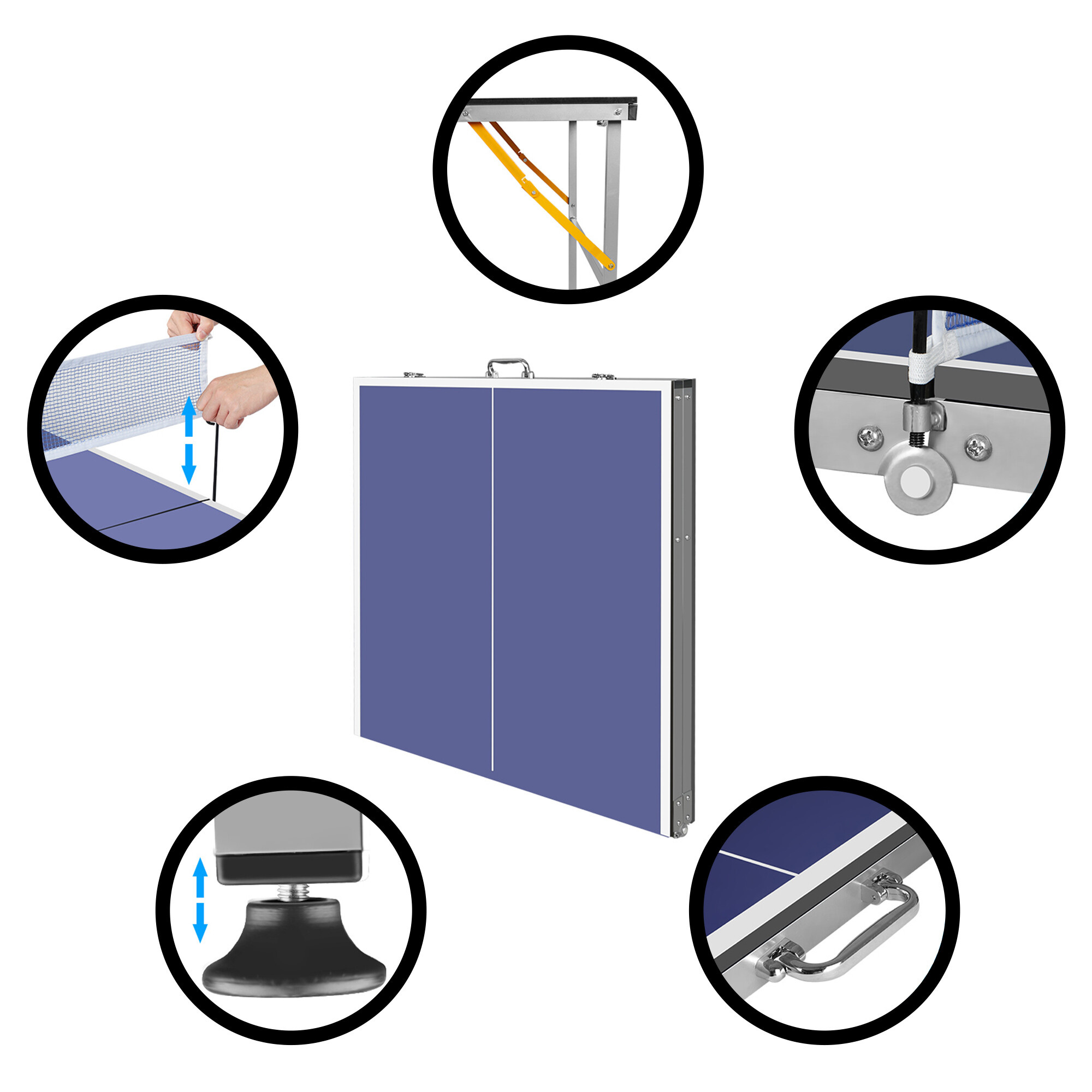 Stůl na stolní tenis je skládací, tak jej během krátké chvilky připravíte ke hraní nebo ho složíte do praktického kufříku, který snadno přenesete kamkoliv s sebou.