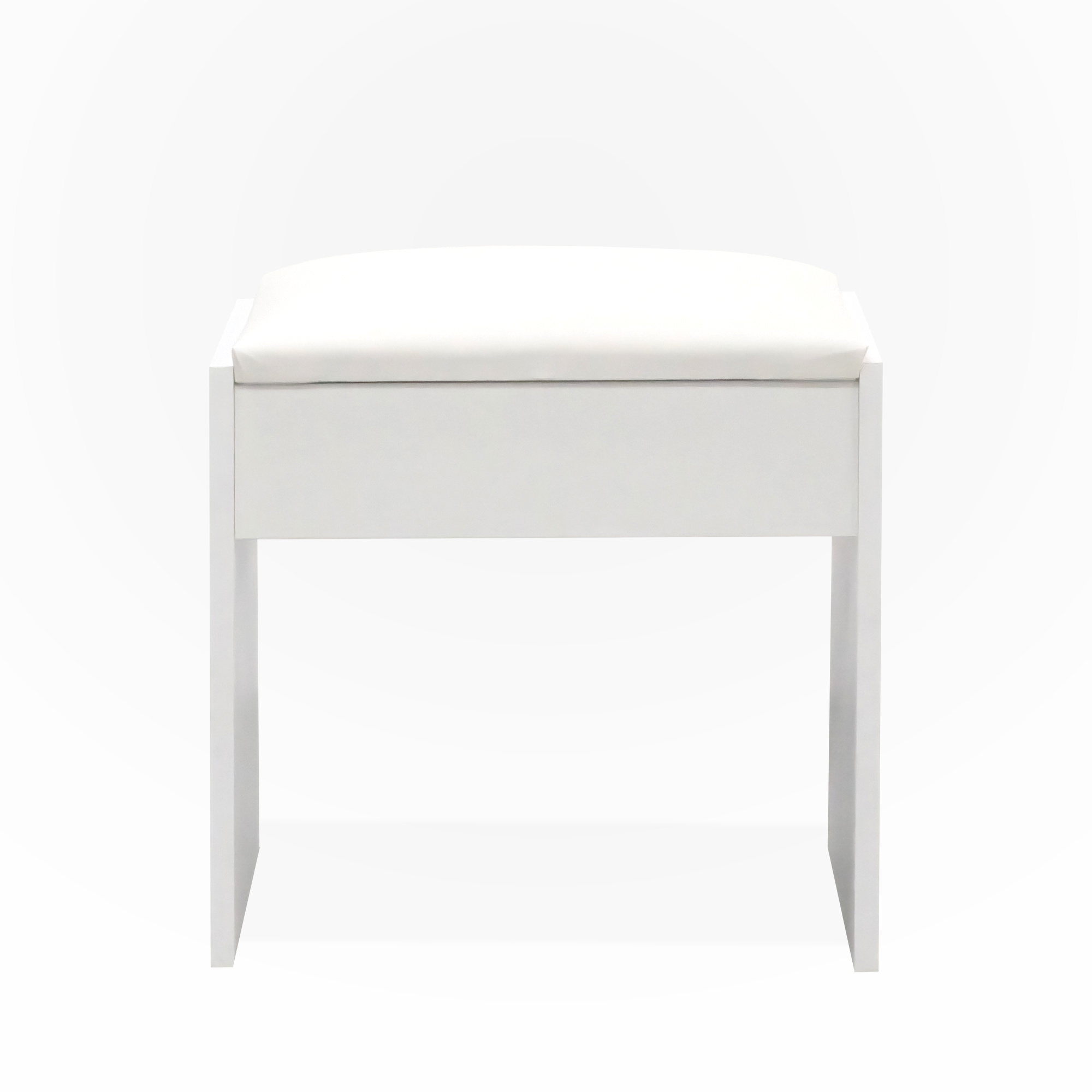 Pohodlný taburet s polstrovaným sedákem je dokonalým doplňkem k vašemu toaletnímu stolku. Židle svým elegantním a jednoduchým designem vizuálně doplní jakýkoliv stolek v bílé barvě.