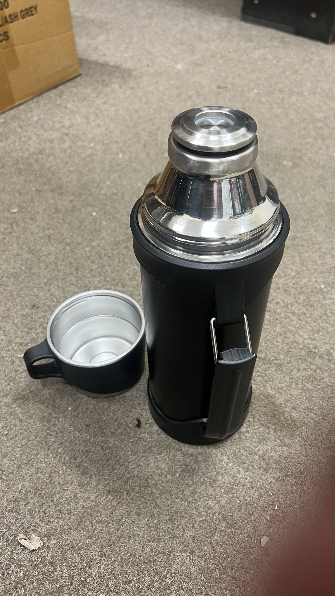 Termoska je plně funkční, zařazená do kategorie 2. jakosti z důvodu drobných kosmetických vad a chybí popruh.