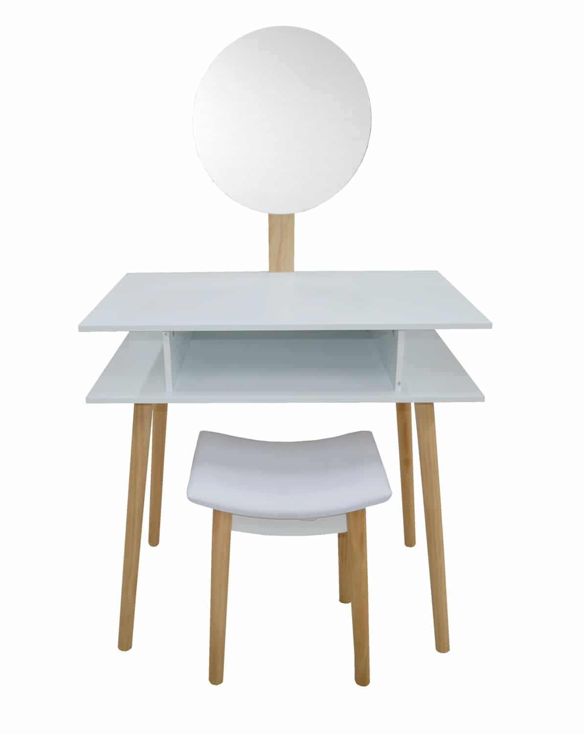 Toaletní stolek pro ženy má krásný vintage design a součástí je i pohodlná čalouněná židle, která dodá pokoji ještě větší půvab a eleganci.