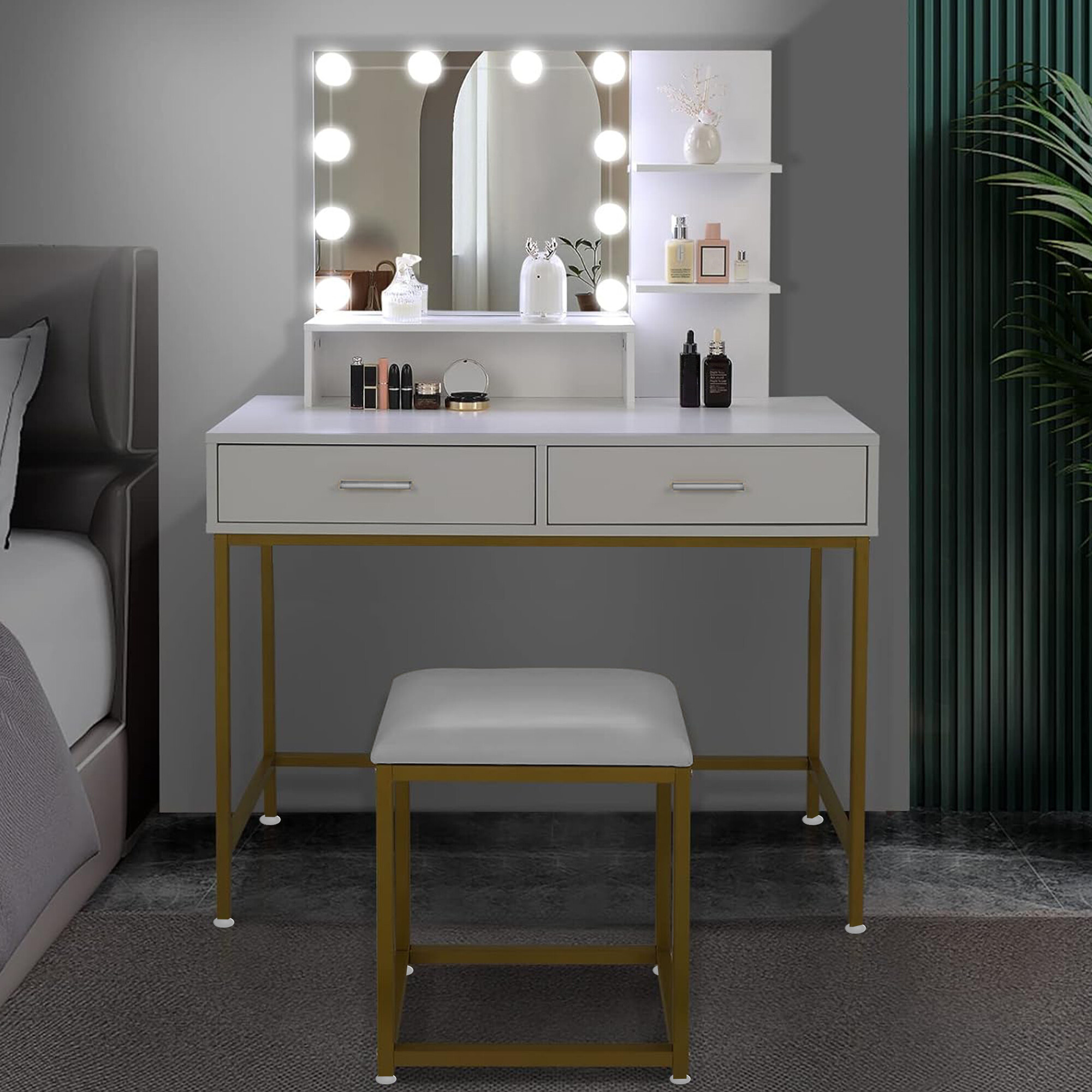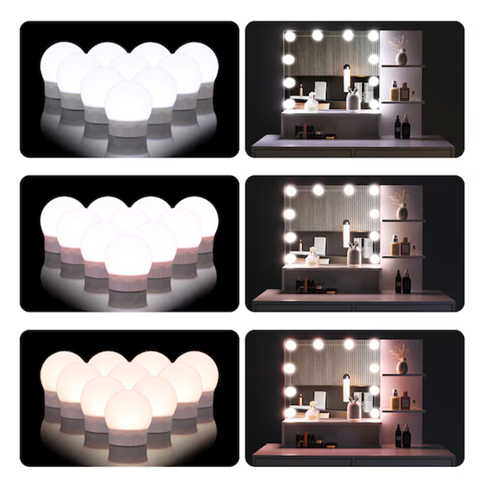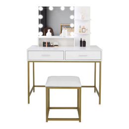 Na zrcadle je 10 LED žárovek, pohodlně se tedy nalíčíte i při špatném přirozeném světle. Taburet je vyrobený z vysoce kvalitní měkké pěny, na které je možné sedět celé hodiny.
