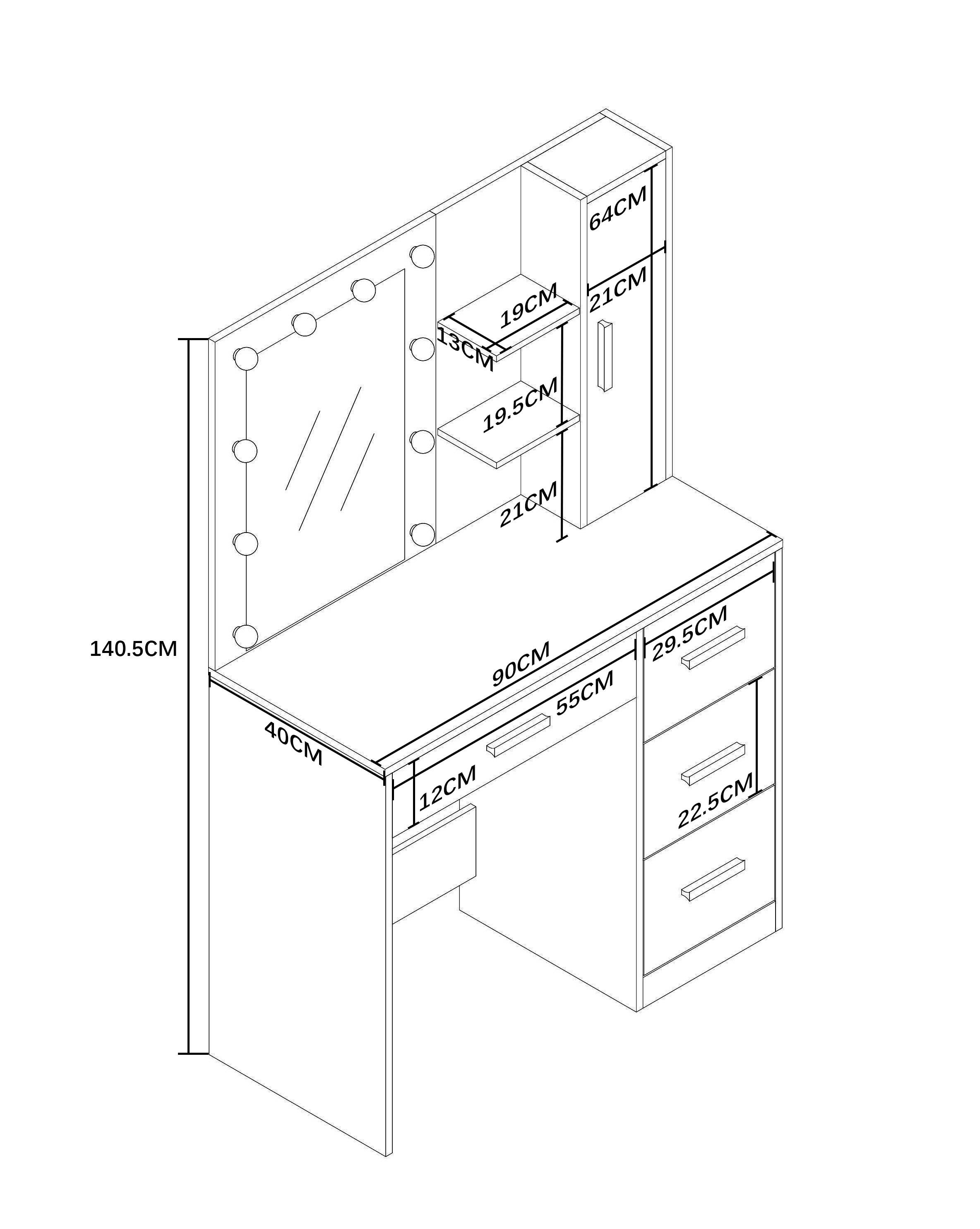 Široká pracovní deska poskytuje dostatek místa pro každodenní líčení, úpravu vlasů i péči o pleť, a zároveň působí elegantně a čistě. Kvalitní dřevotříska zaručuje pevnost, stabilitu a dlouhou životnost stolku, který si zachová krásu i po letech používání.