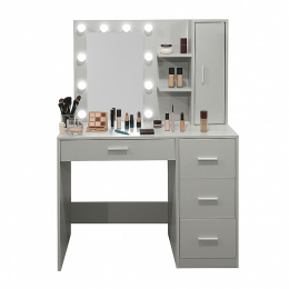 Dominantou stolku je velké zrcadlo s 10 LED žárovkami. Díky tomu si vždy zajistíte ideální osvětlení pro líčení, úpravu vlasů nebo večerní péči o pleť.